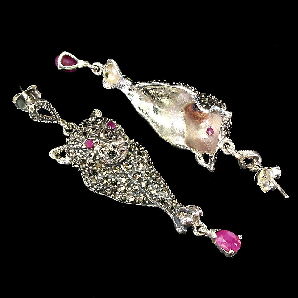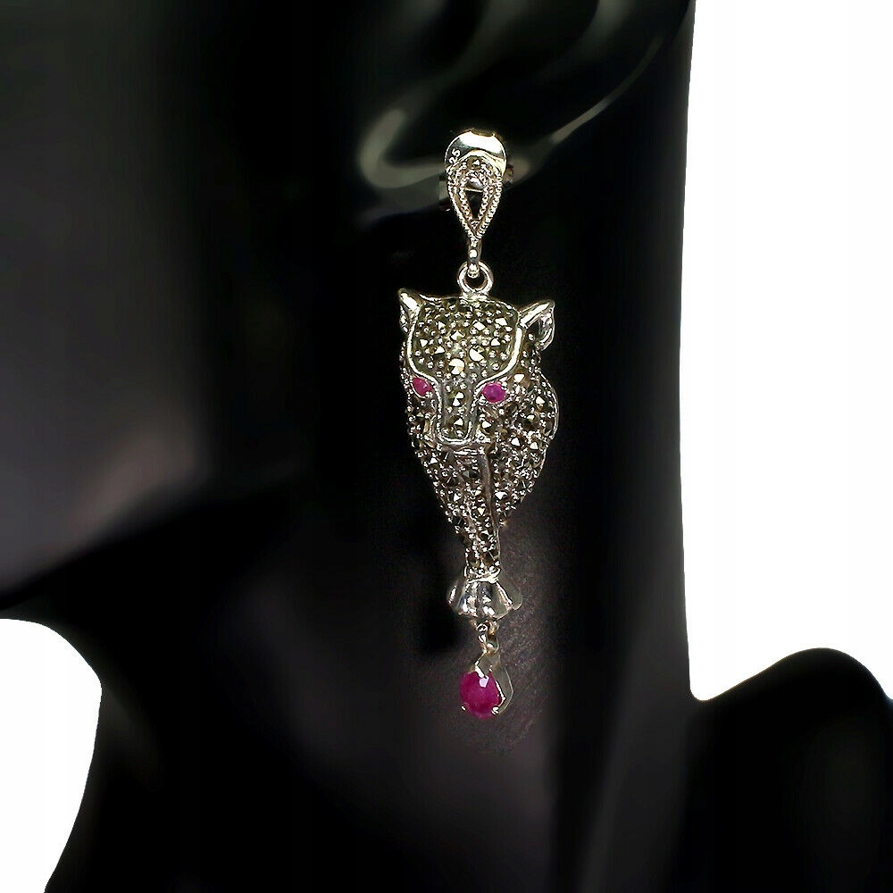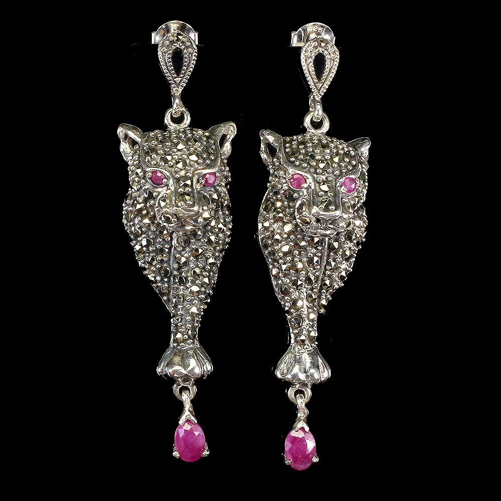 Wir bieten Ihnen neue Ohrringe aus Silber - 925 mit natürlichen Rubinen und Markasiten. Schöne Tiger.
