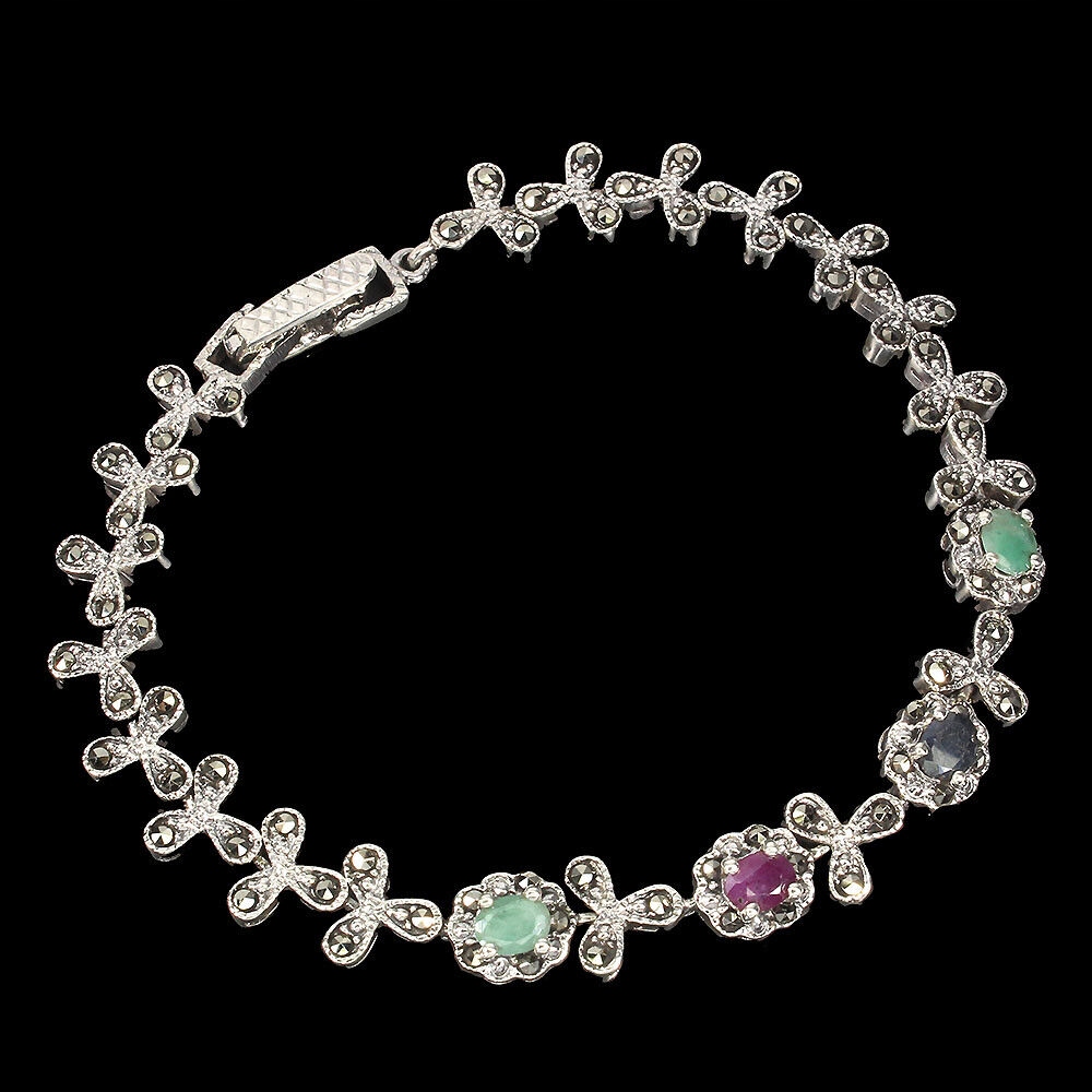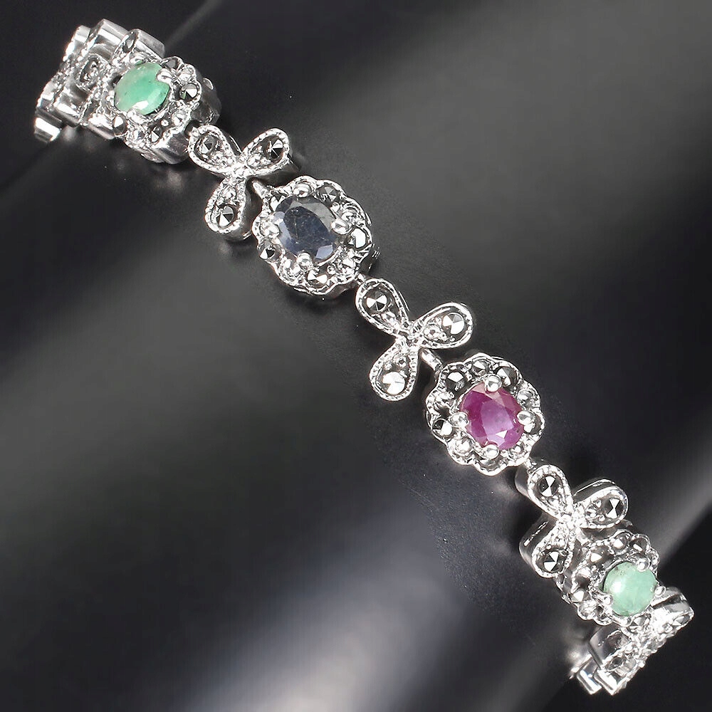 Wir bieten Ihnen ein neues Armband aus Silber - 925 mit natürlichen Saphiren, Markasiten, Rubinen und Smaragden an.