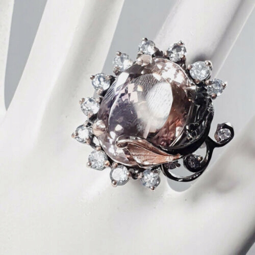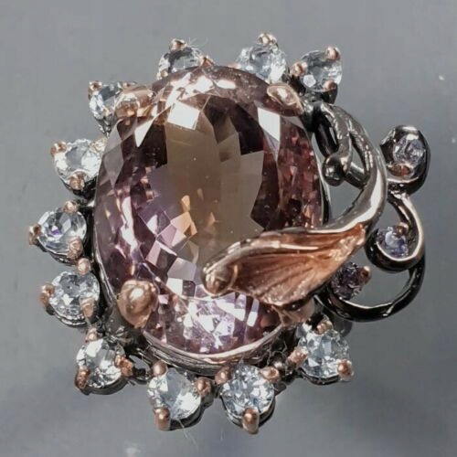 Wir bieten Ihnen einen neuen, rosévergoldeten und schwarzrhodinierten Ring aus Silber - 925 mit natürlichem zweifarbigem Ametrin 21ct, Topas und Zirkonia an.