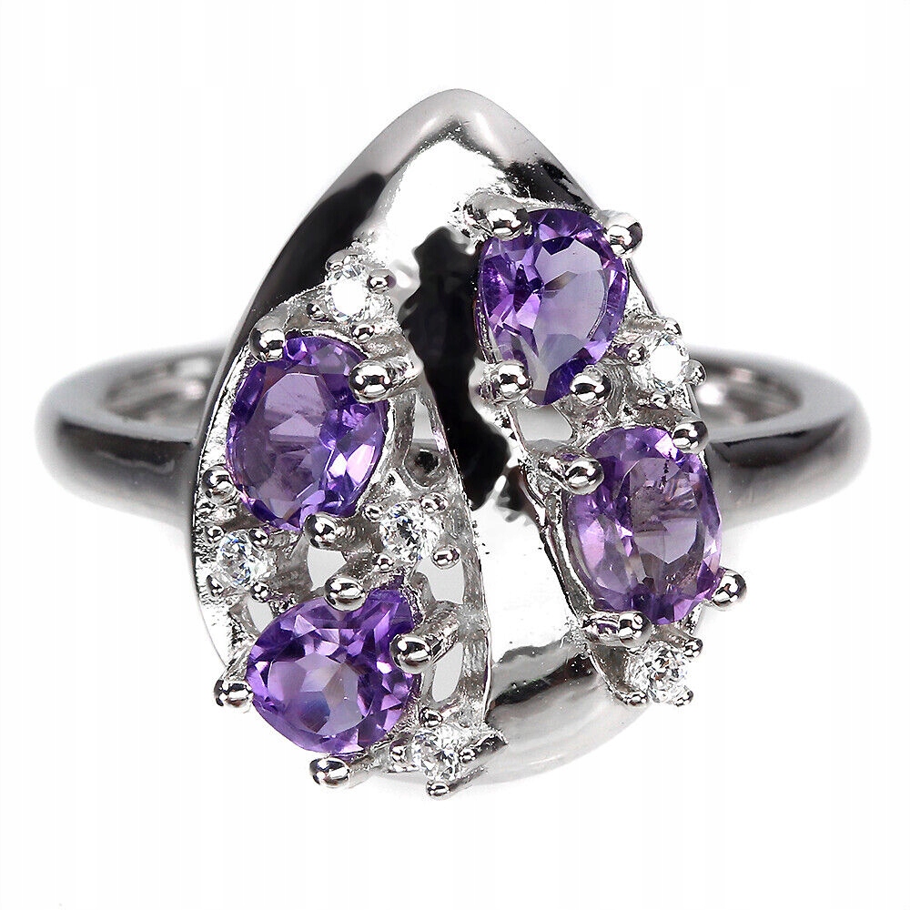 925 Ring Größe 17 natürliche Amethyste und Zirkonia