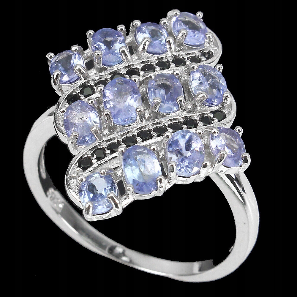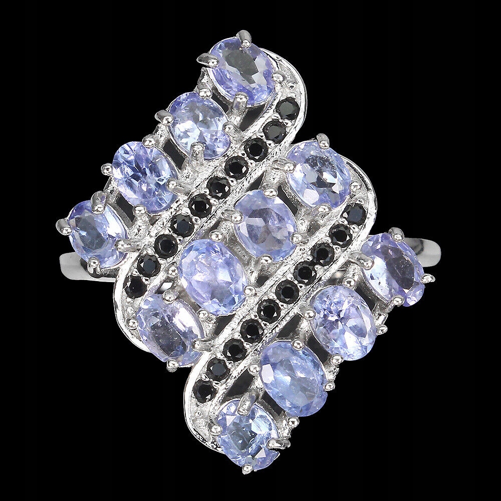 Wir bieten Ihnen einen neuen, 14K weißvergoldeten Silberring - 925 mit natürlichen Tansaniten und schwarzen Spinellen.