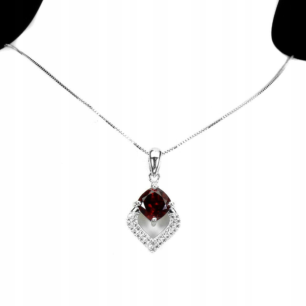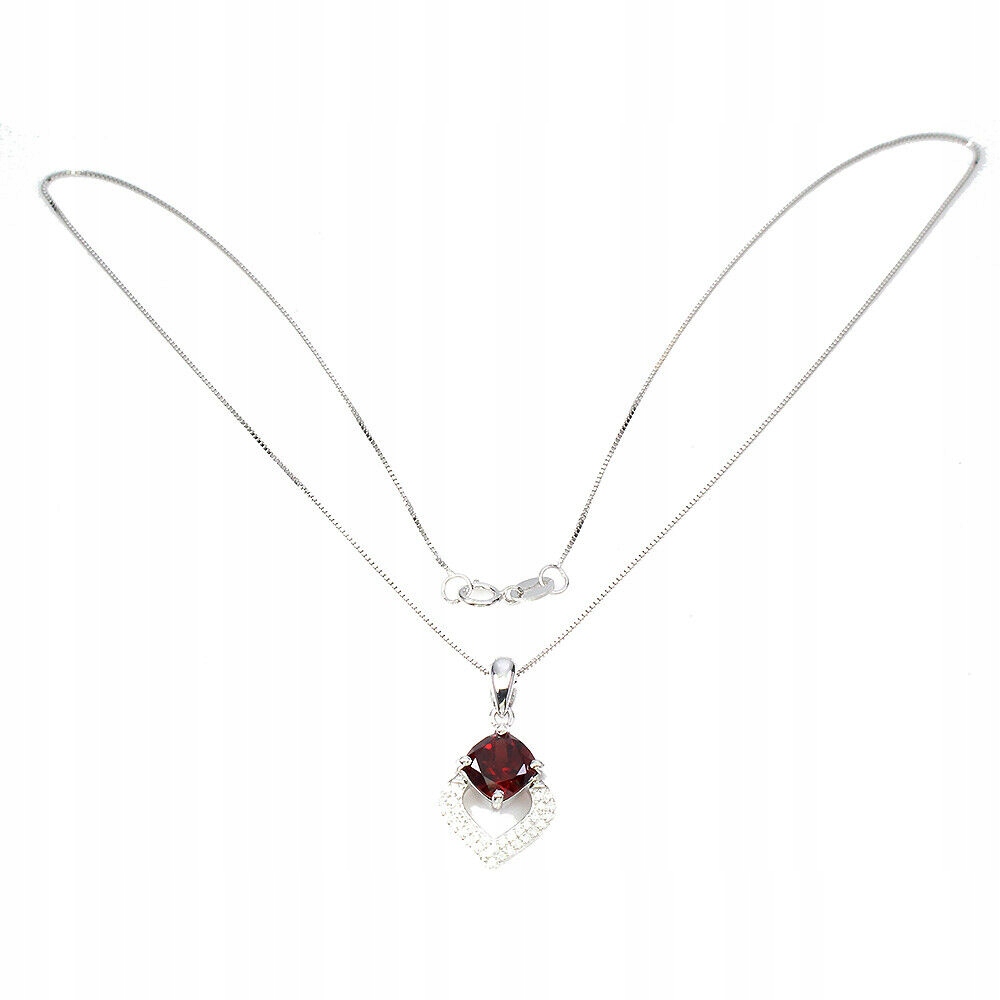 Mit 14 Karat Weißgold plattierte Silber - 925er Silberkette mit natürlichem Granat und Zirkonia an.