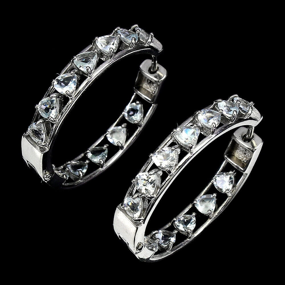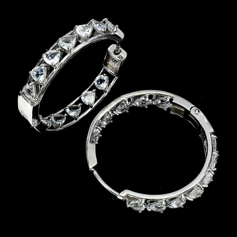 Wir bieten Ihnen neue, 14 Karat weiß vergoldete, Silber - 925 Ohrringe mit natürlichen Aquamarinen im Herzschliff.