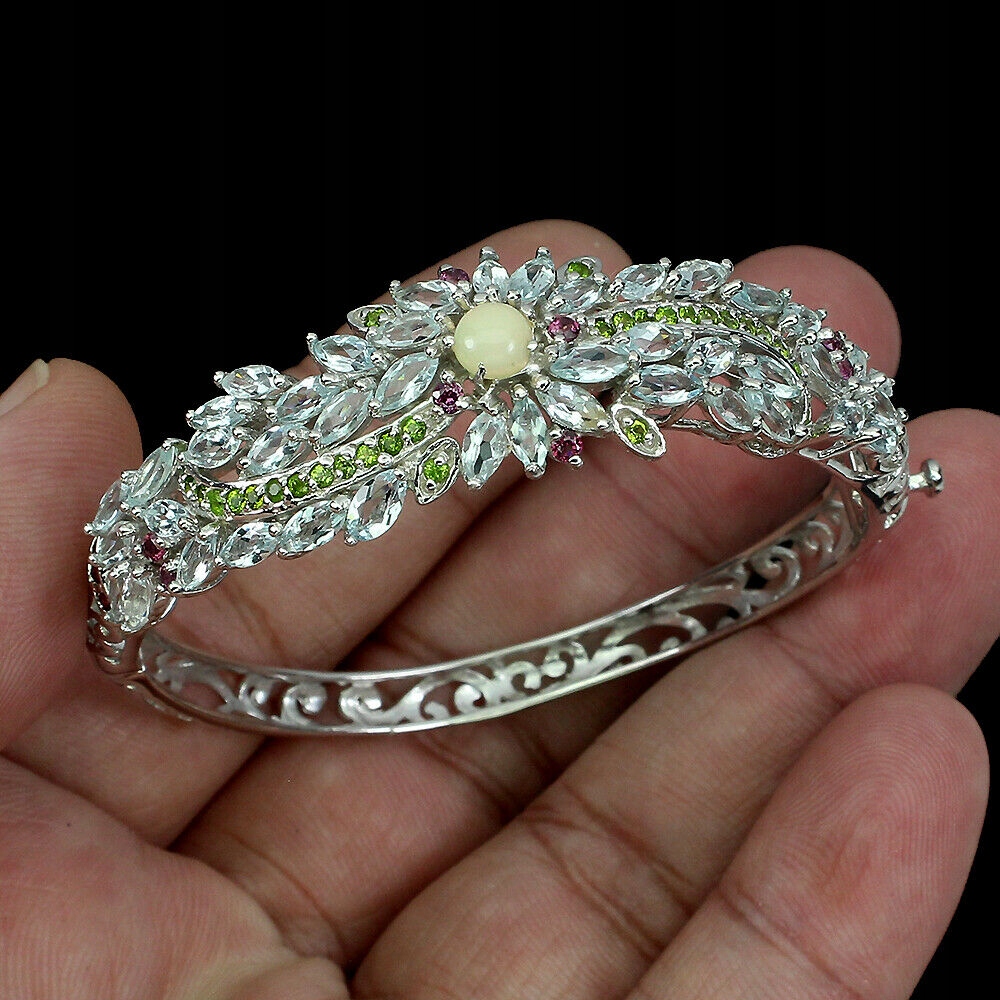 925 Sterling Silber Aquamarin Opal Granat Armband