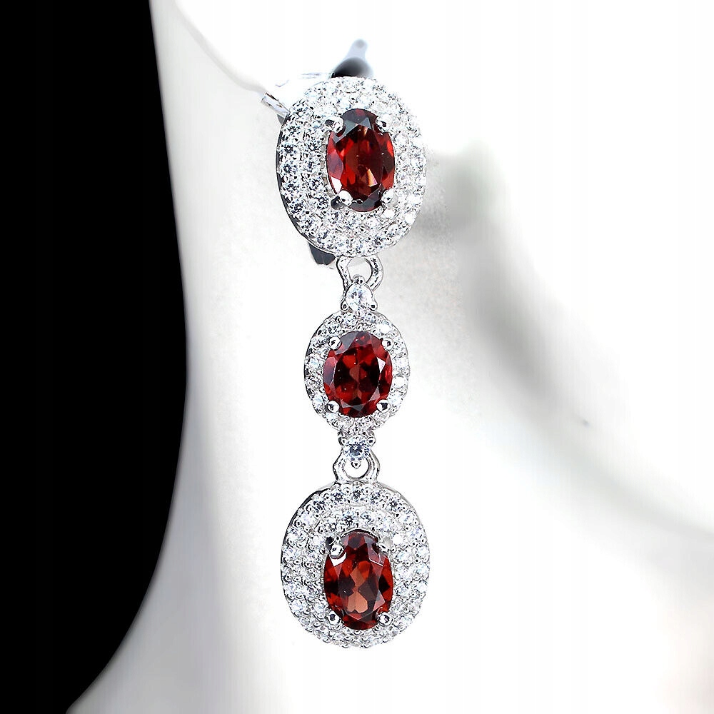 925 Wunderschöne natürliche Granat Zirkonia Ohrringe 3
