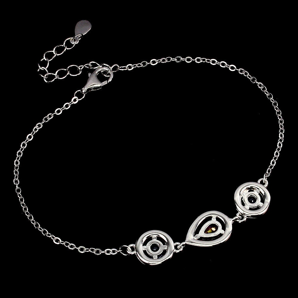 Wir bieten Ihnen ein neues, weiß 14 Karat vergoldetes Silber-925-Armband mit natürlichen Tansaniten, rosa Topas und Zirkonia an.