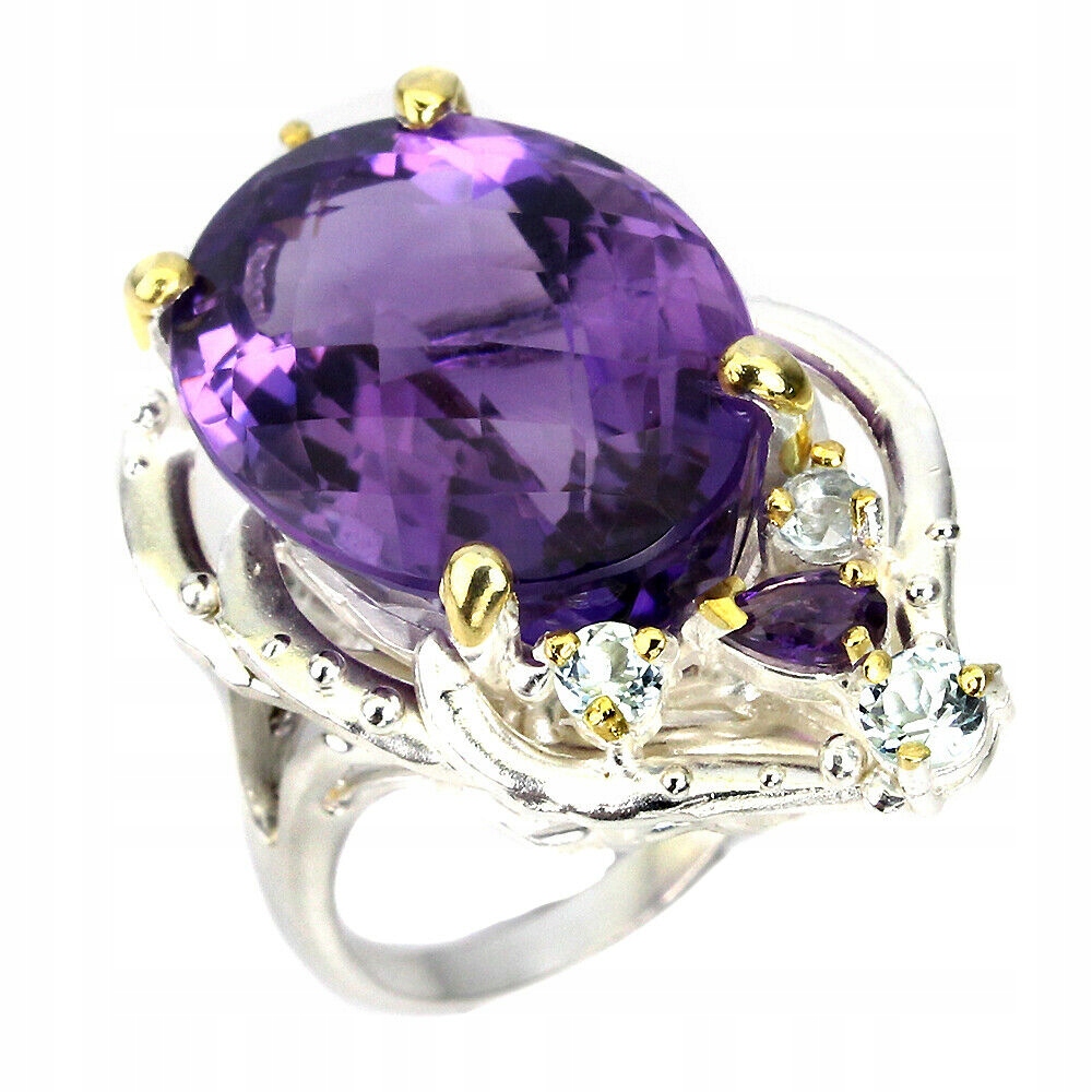 Wir bieten Ihnen einen neuen, Silber - 925 - vergoldeten 14 Karat Weiß- und Gelbgoldring mit natürlichen Aquamarinen und Amethysten an.