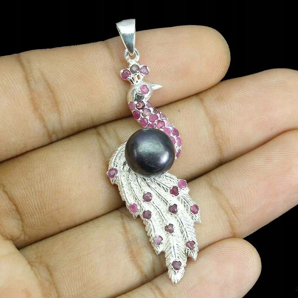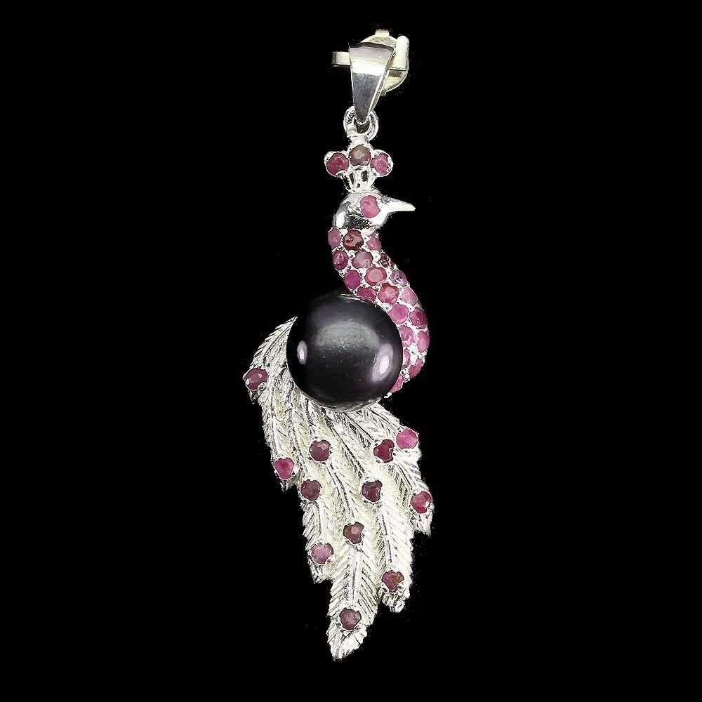 Anhänger Silber Perle 925 natürliche Rubine Pfau
