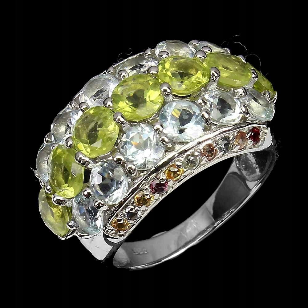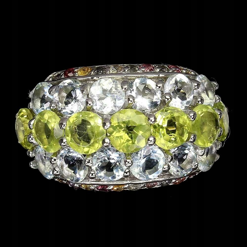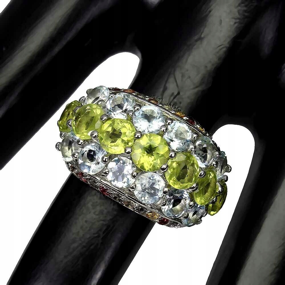 Wir bieten Ihnen einen neuen, 14 Karat Weißgold, Silber - 925er Feinheitsring mit natürlichen Olivinen, Aquamarinen und Saphiren an.