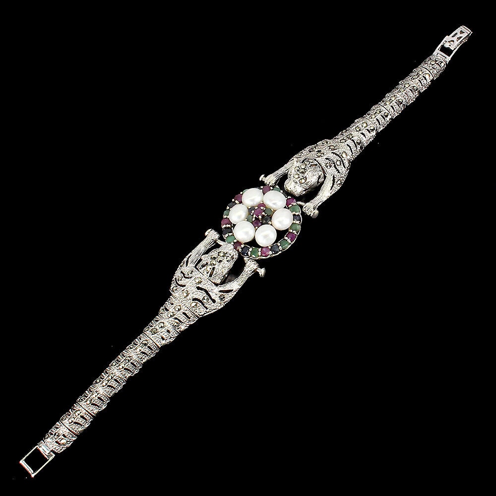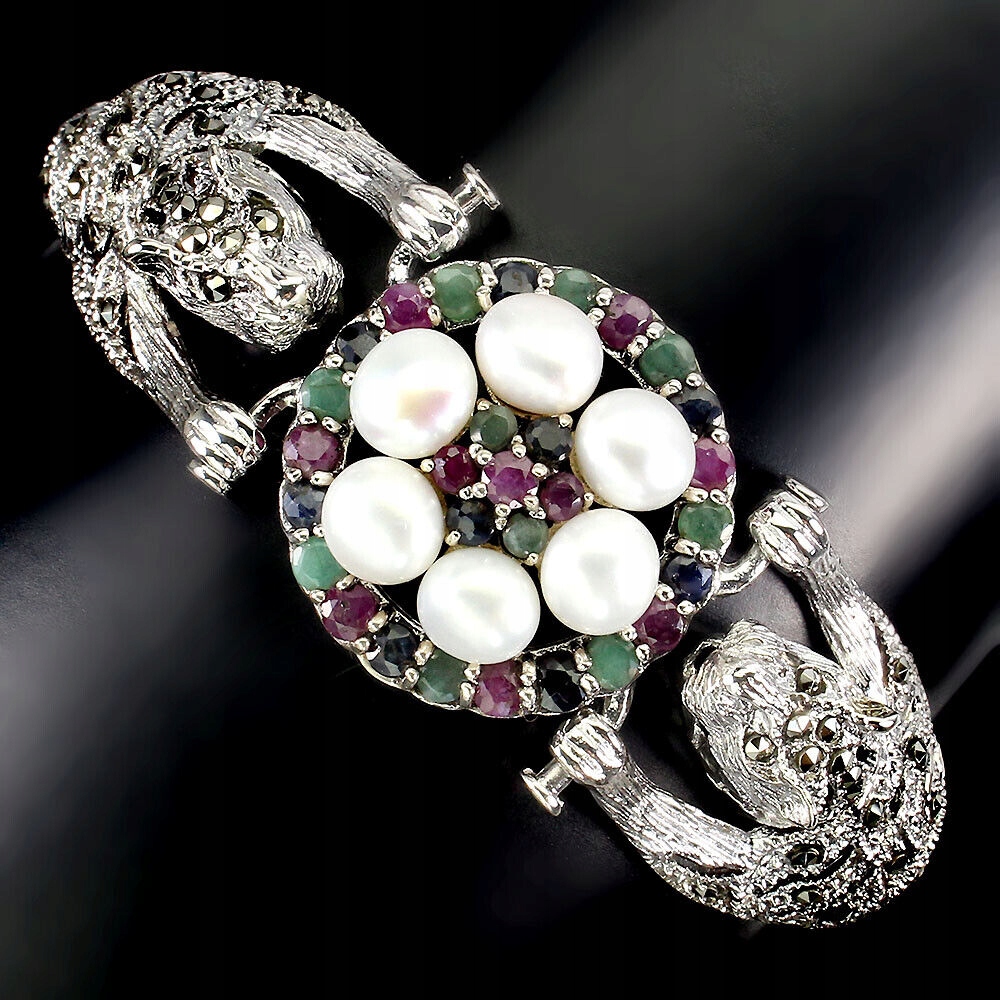Wir bieten Ihnen ein neues Armband aus Silber - 925 mit Naturperlen, Saphiren, Rubinen, Markasiten und Smaragden an.