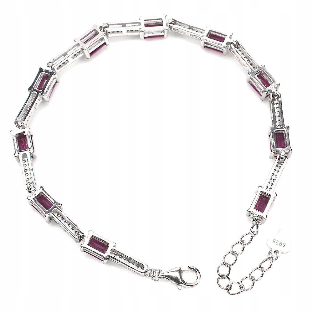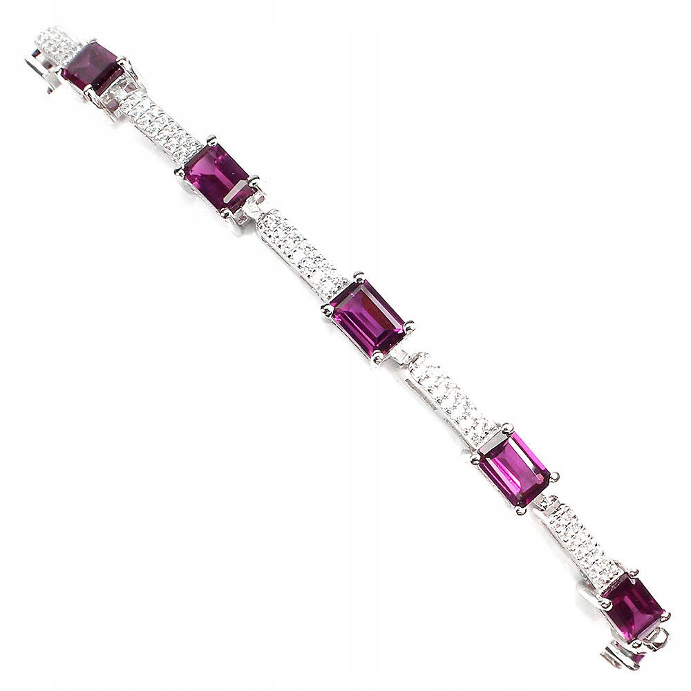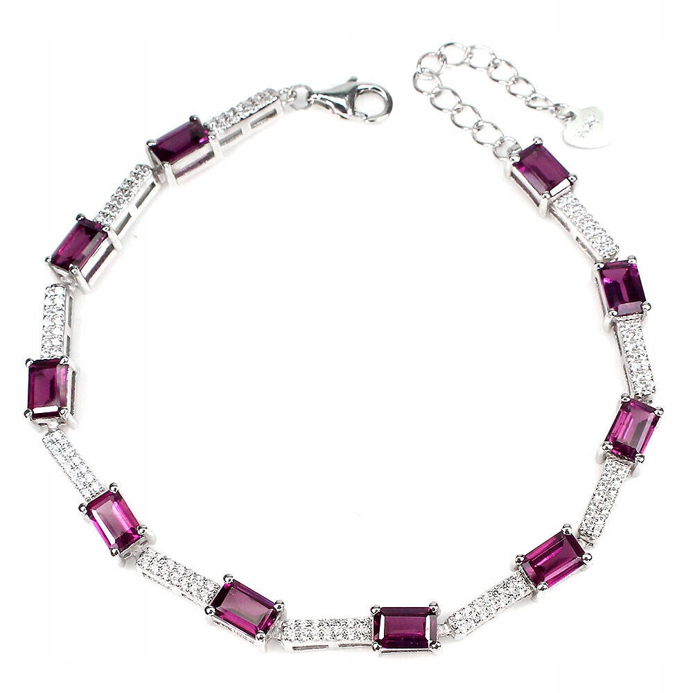 Wir bieten Ihnen ein neues, 14 Karat weiß vergoldetes Armband aus Silber - 925 mit natürlichen Granaten (Rhodoliten) und Zirkonias an.