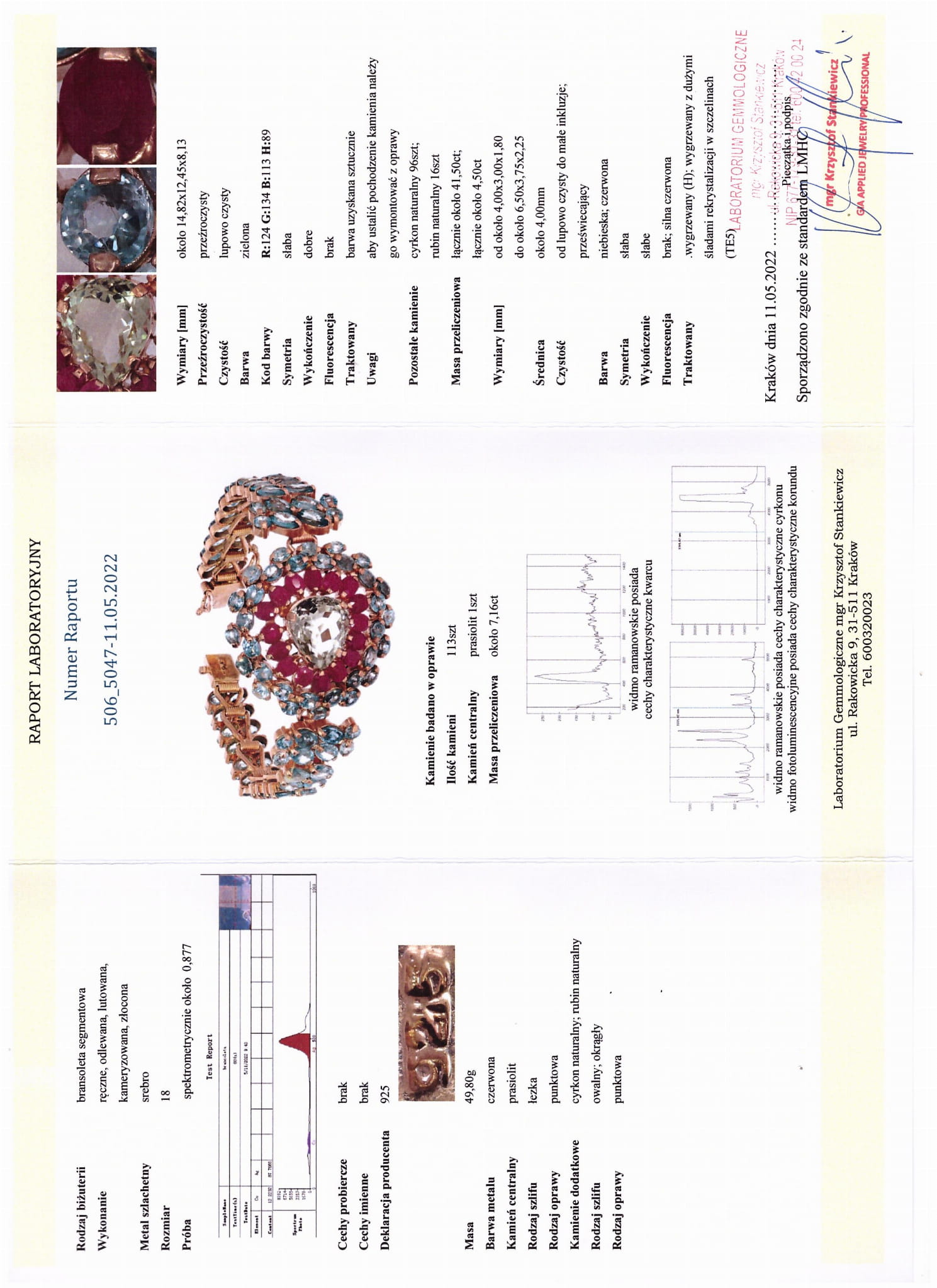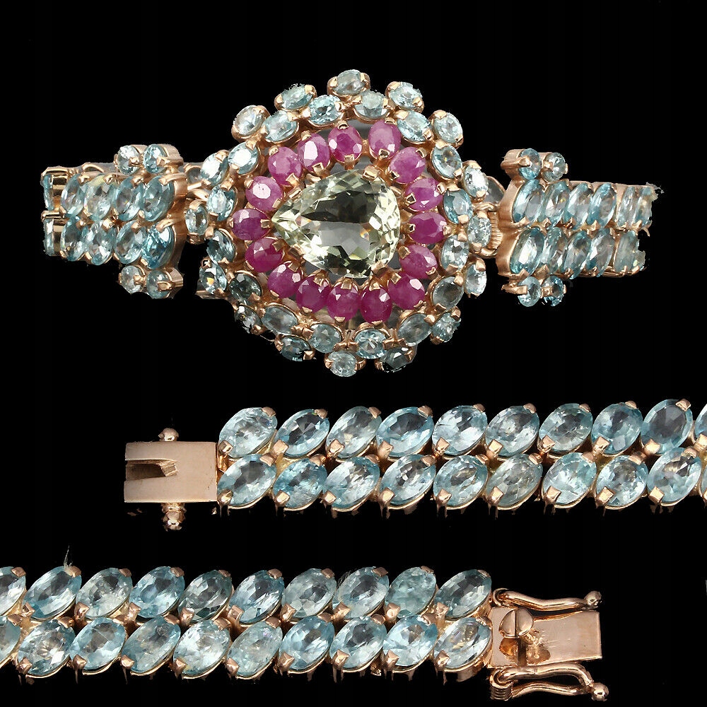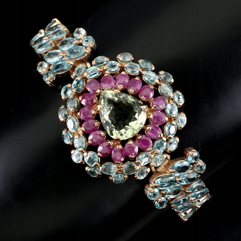 Ich verkaufe hier ein neues, vergoldetes rosa (Farbe: rot) Silber-Gold - 925 (spektrometrisch ca. 0,877) Armband mit natürlichem Prasiolith (genannt "grüner Amethyst"), Rubinen und Zirkonen (schöne, seltene Steine). ist zertifiziert und bewertet in Höhe von 10.100 PLN.