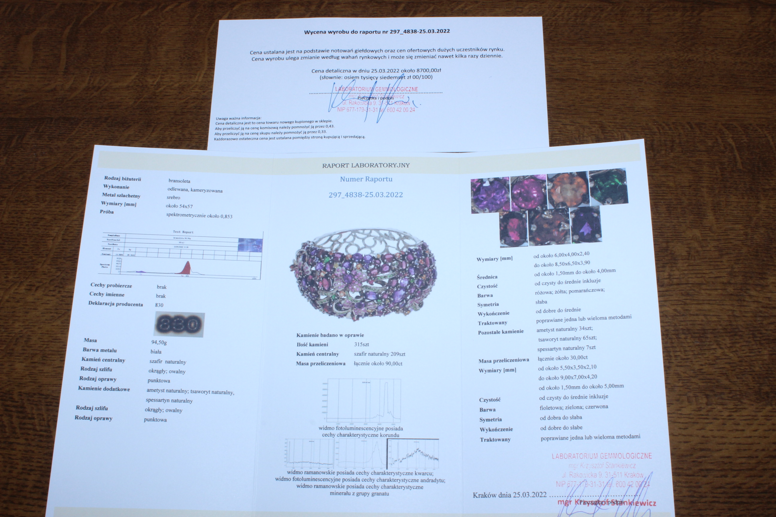 Das Armband hat ein Zertifikat und einen Wert von 8.700 PLN.