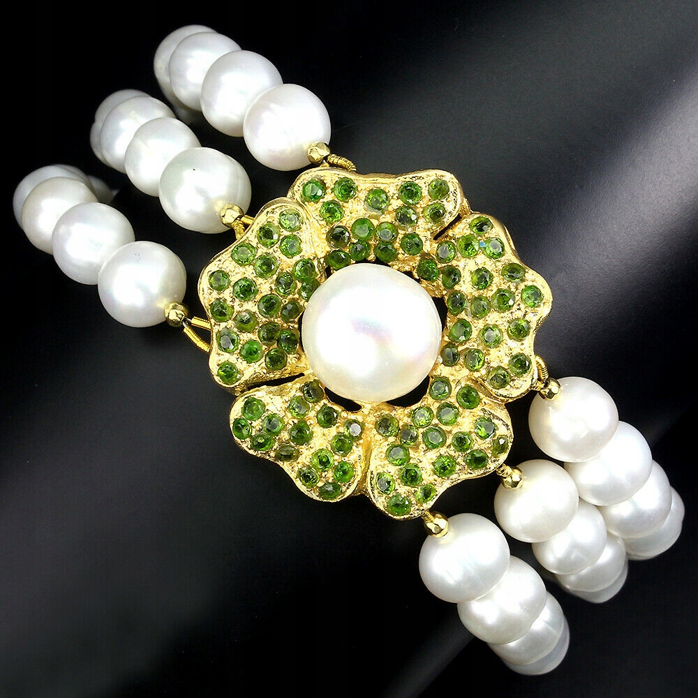 Wir bieten Ihnen ein neues Armband aus 14 Karat Gelbgold, Silber - 925 mit natürlichen Diopsiden und Perlen an.