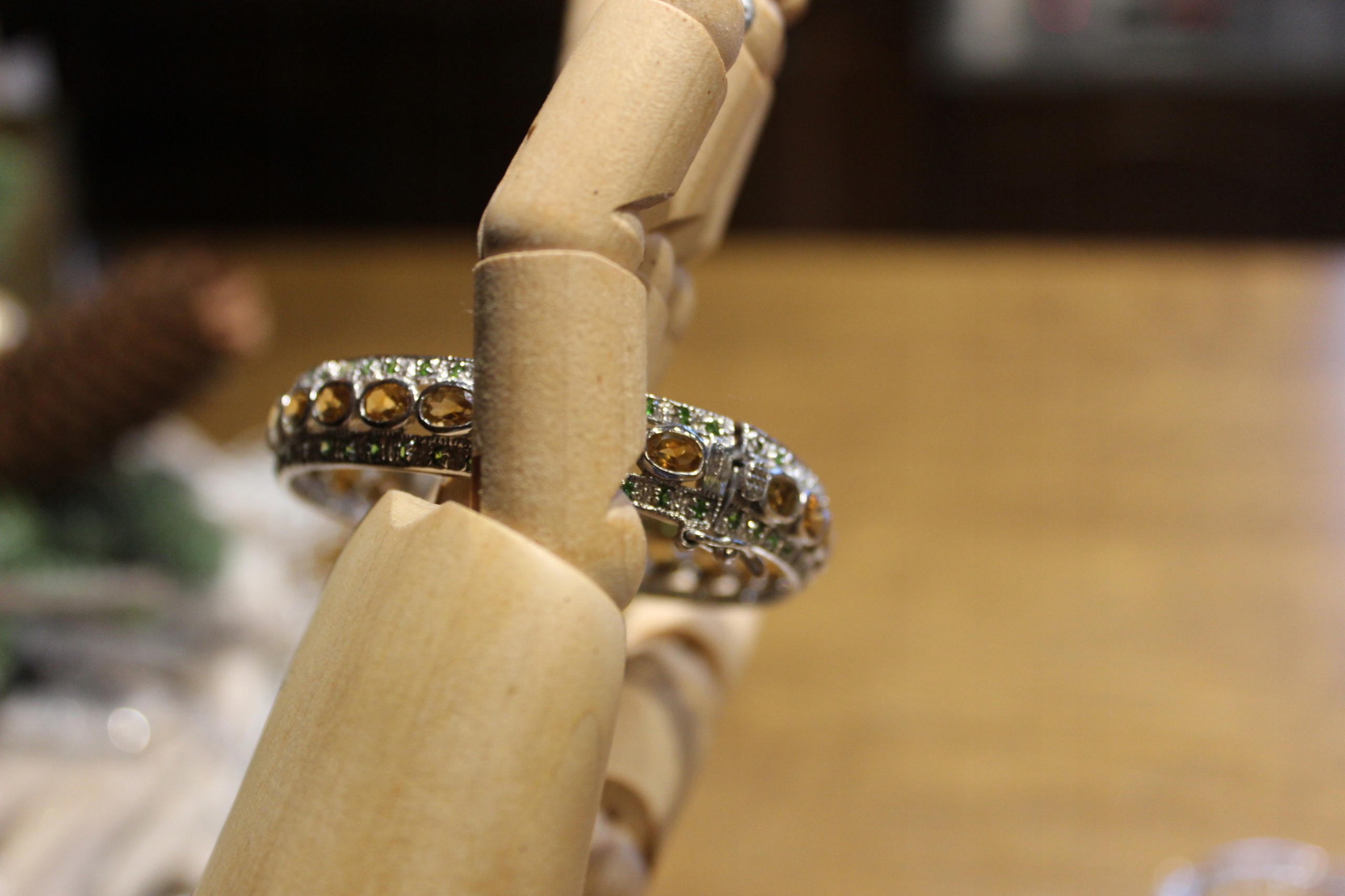 Ich verkaufe ein neues (ohne Etikett), vergoldet mit 14 Karat Weißgold, Silber - 925 Armband mit natürlichen Citrin und Tsavoriten. Es ist schmal, Armumfang: 17 cm.