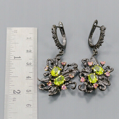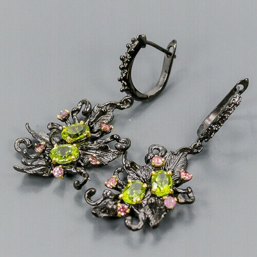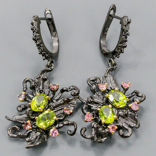 Wir bieten Ihnen neue, gelbvergoldete und schwarzrhodinierte Silber - 925 Ohrringe mit natürlichen Olivinen und Turmalinen.