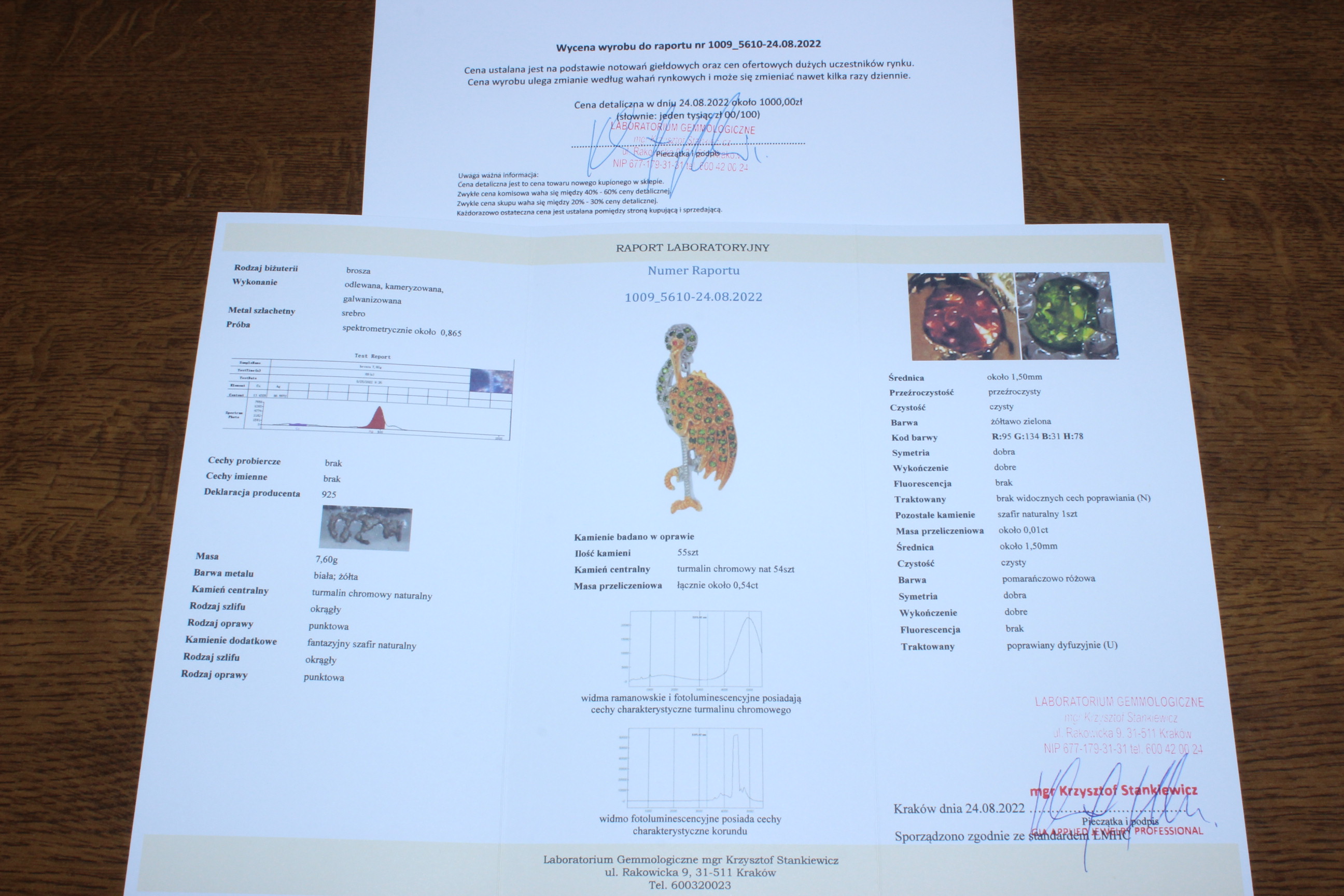 wir bieten Ihnen eine neue, mit Weiß- und Gelbgold vergoldete, Silber - Feinheit 925 (ca. 0,865 spektrometrisch) Brosche mit natürlichen Chromturmalinen und Saphiren an. Es hat ein Zertifikat und eine Bewertung von 1.000 PLN. Es ist: gegossen, kameraplattiert, verzinkt.