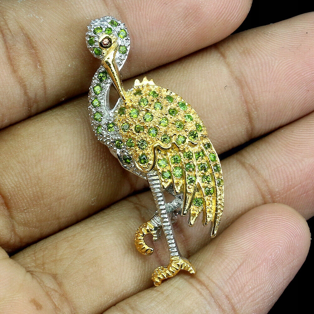 Brosche 925 Saphir Turmalin Vogel Zertifikat