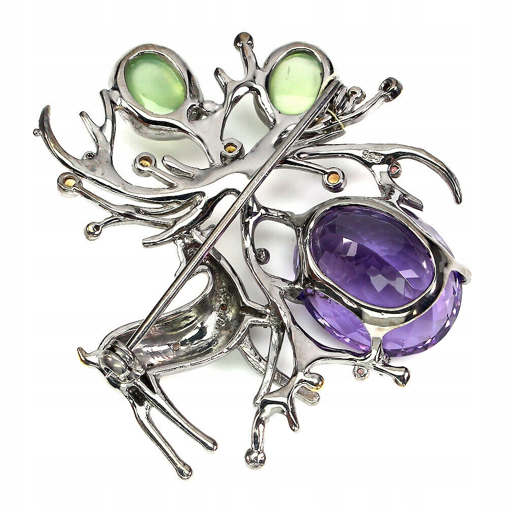 Brosche Amethyst Prehnit Saphire Hirsch 24.68ct