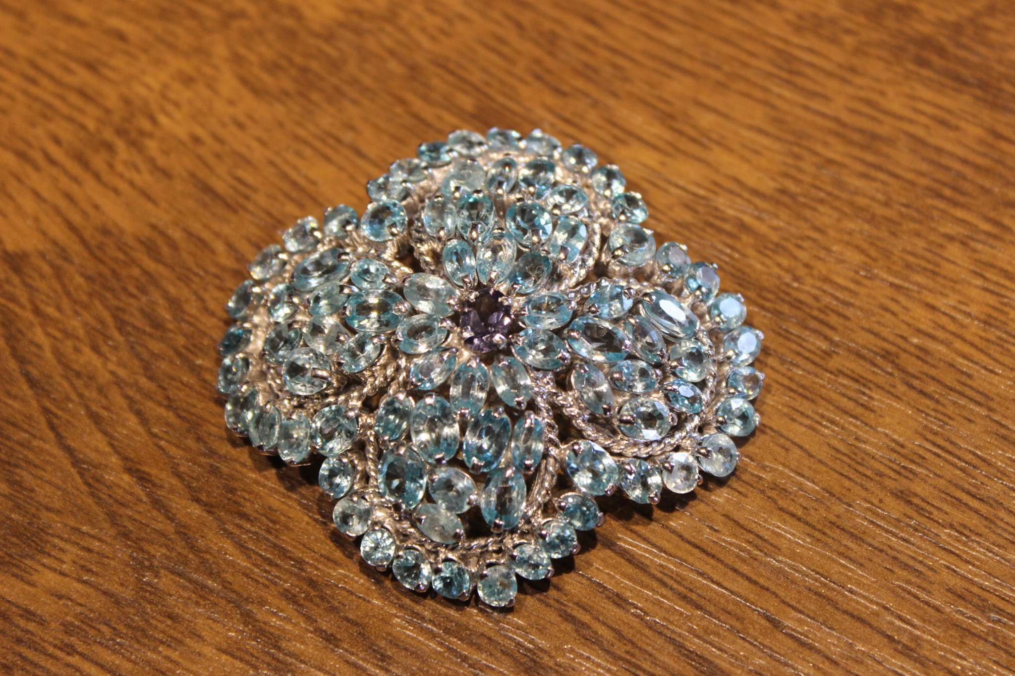 Brosche Anhänger 925 Zirkone Tansanit zertifiziert