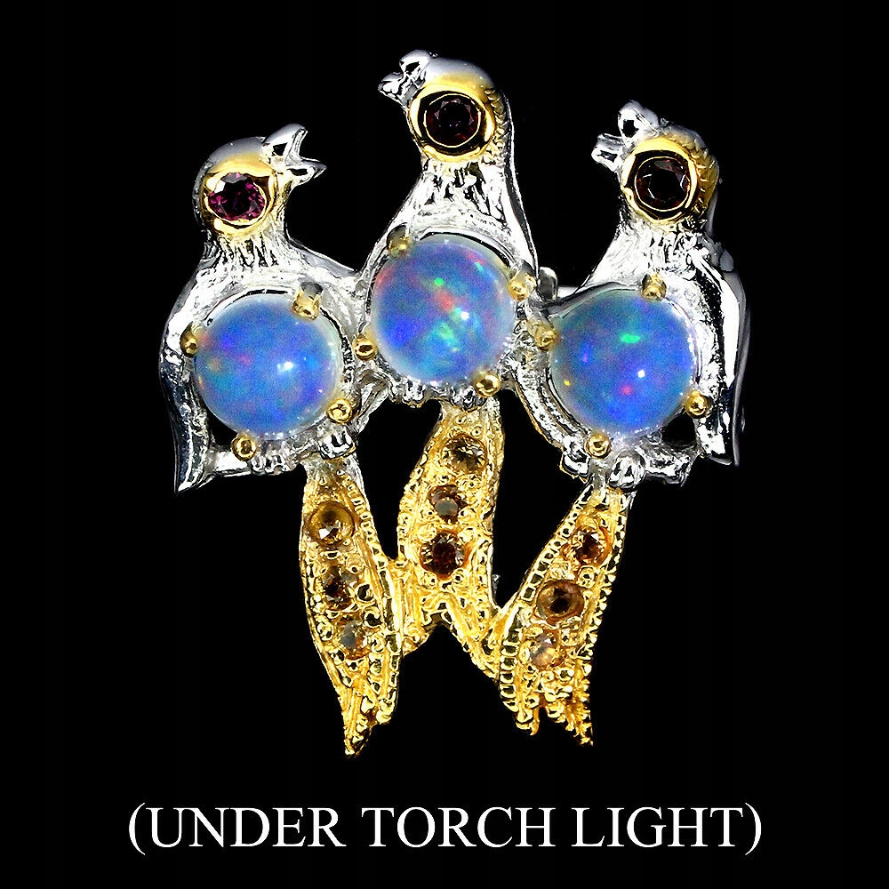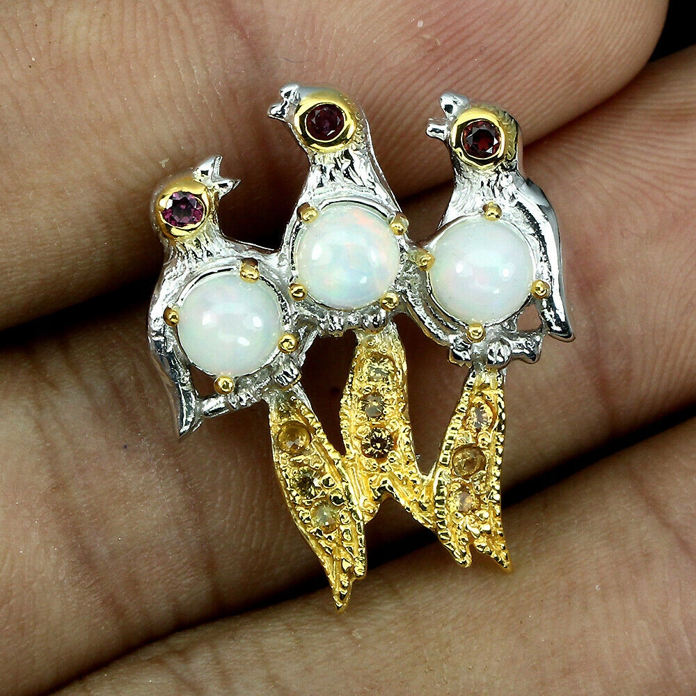 Brosche Silber Opale 925 natürliche Vogel Saphire