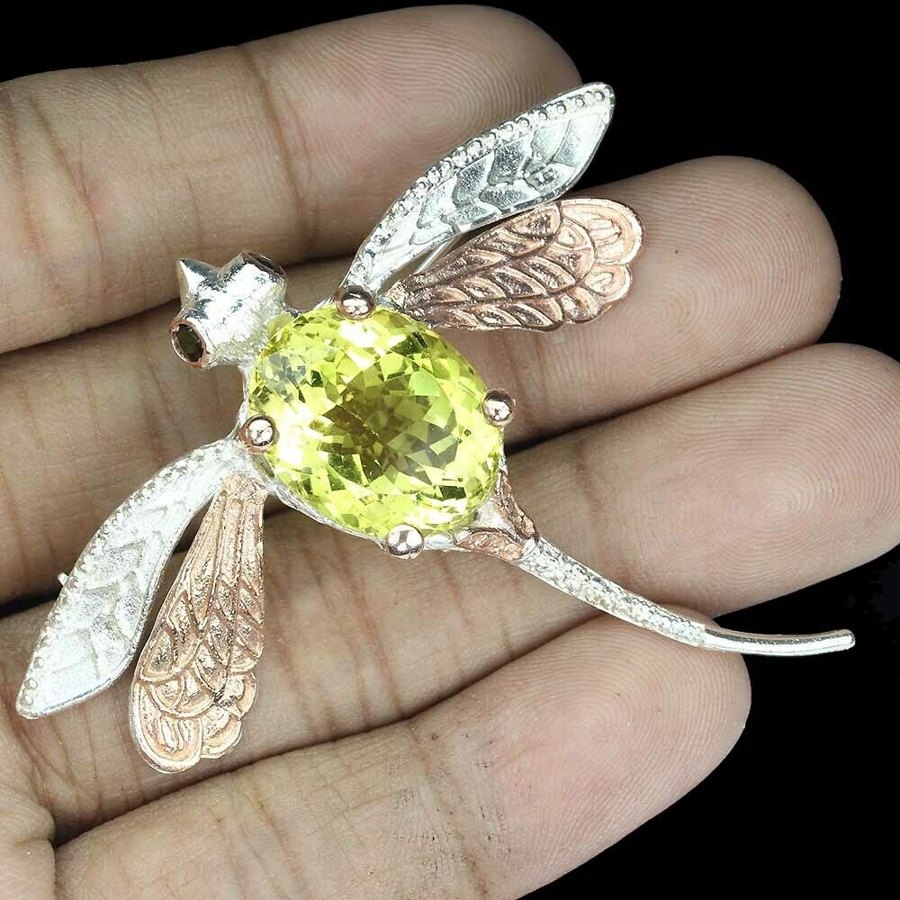 Brosche Silber Quarz 925 natürlicher Turmalin Libelle