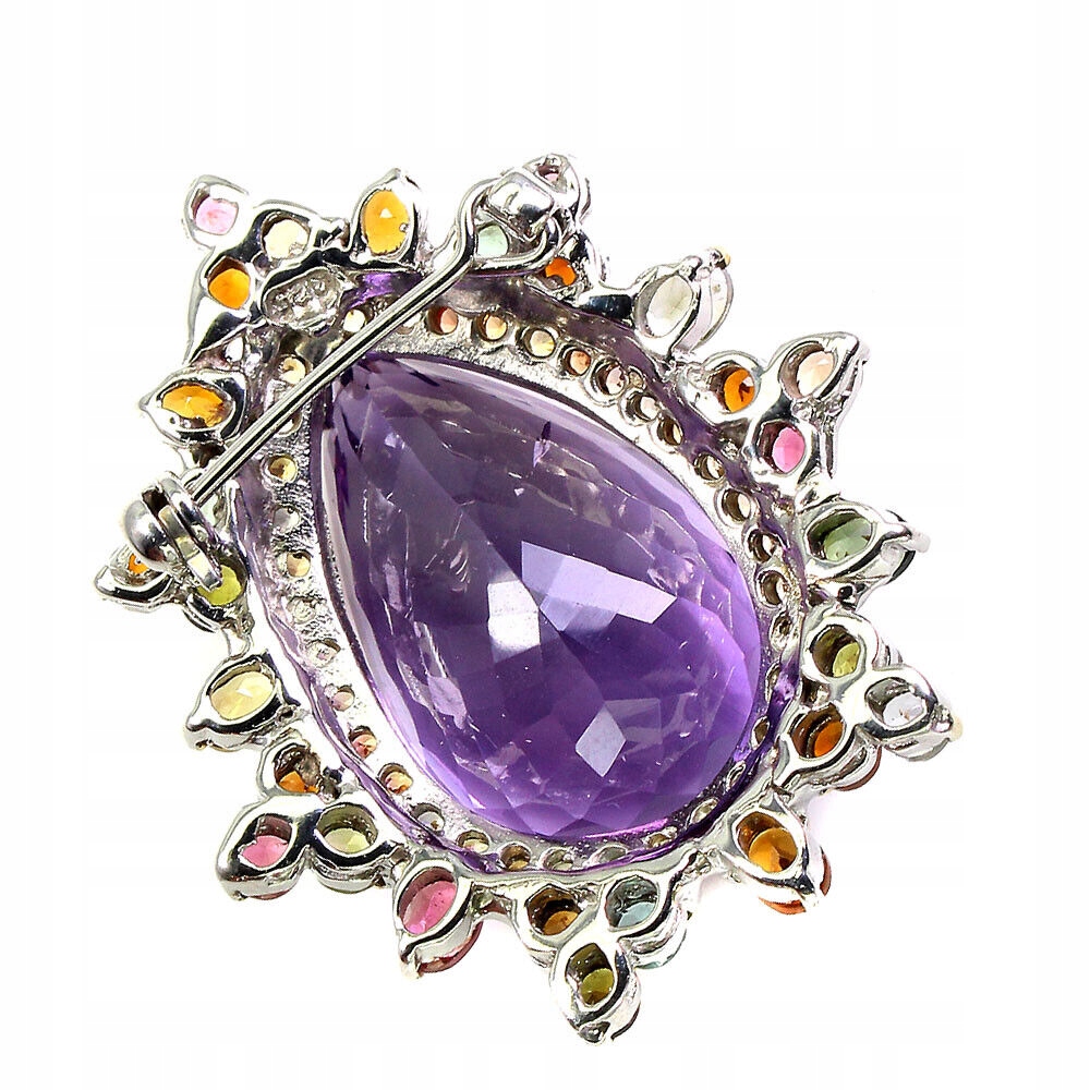 Brosche natürlicher 29,12 ct Amethyst Turmalin Saphir