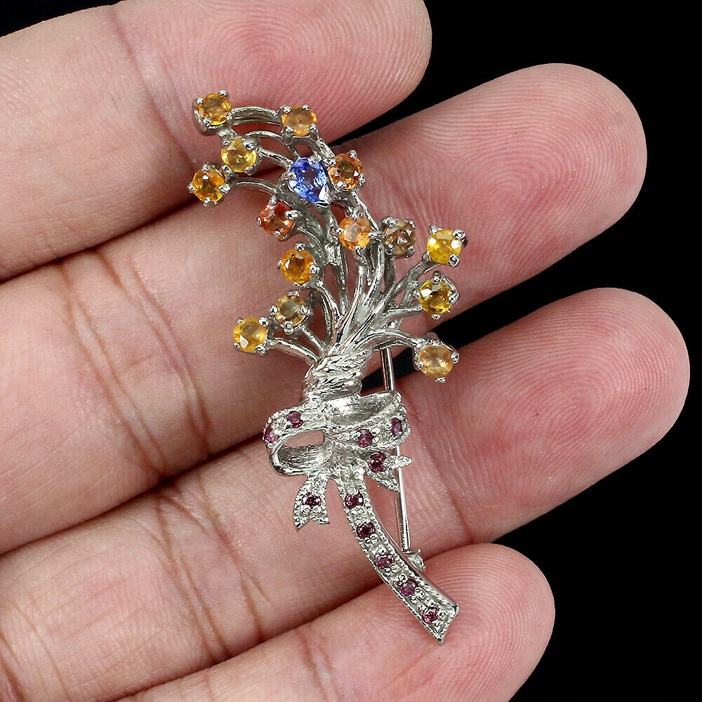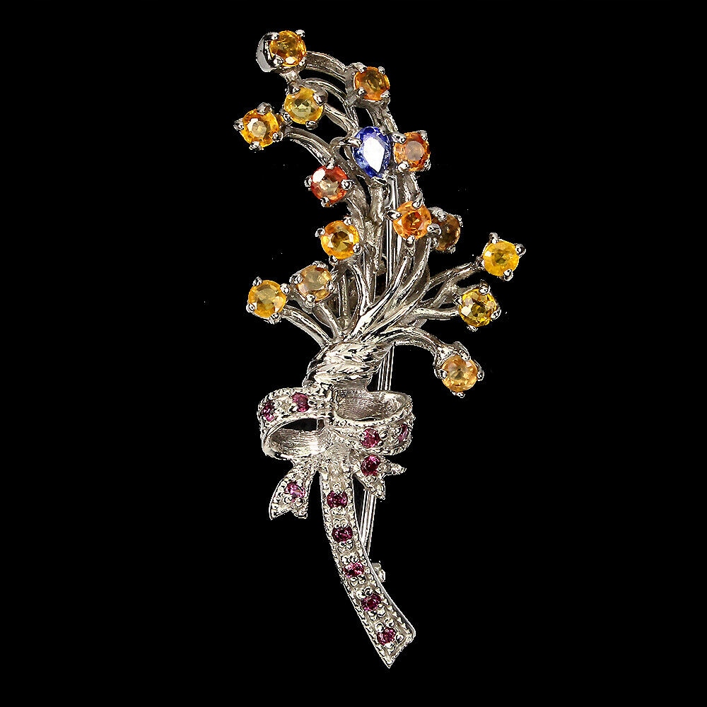 Brosche natürliches Silber Granate Saphire Tansanite