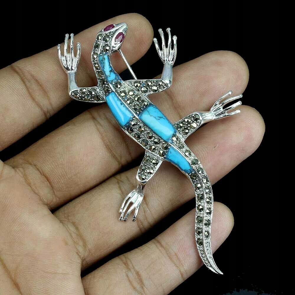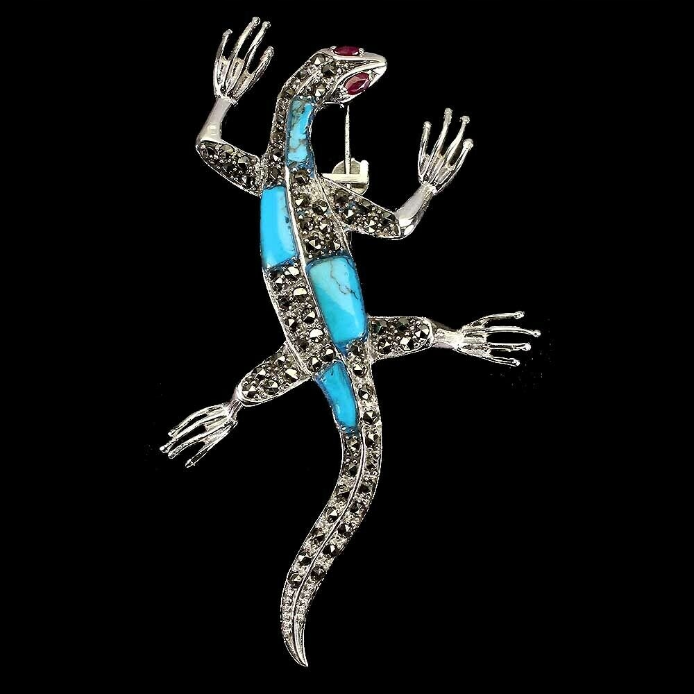 Eidechsen Brosche natürlicher Türkis Markasit 925