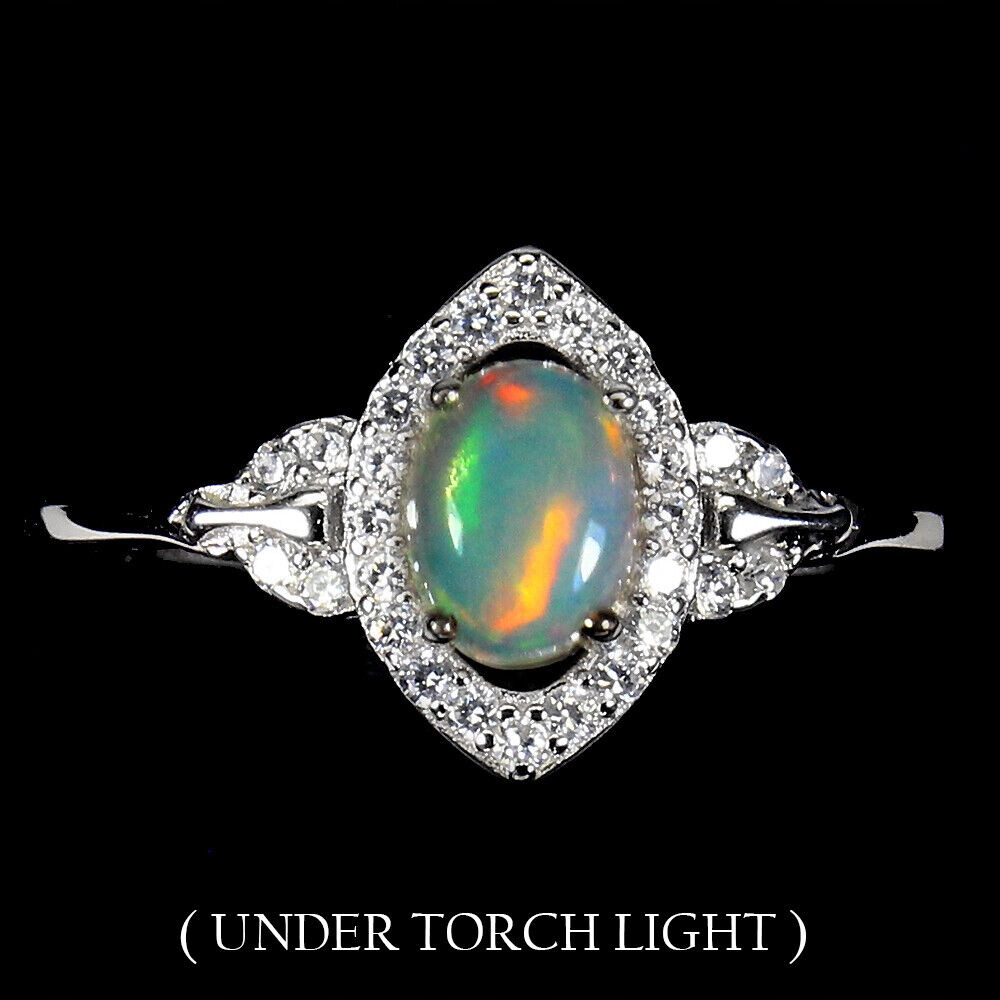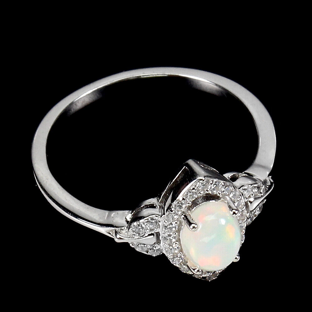 Wir bieten Ihnen einen neuen, 14K Weißgold vergoldeten Silberring 925 mit natürlichem Feueropal und Zirkonia an.