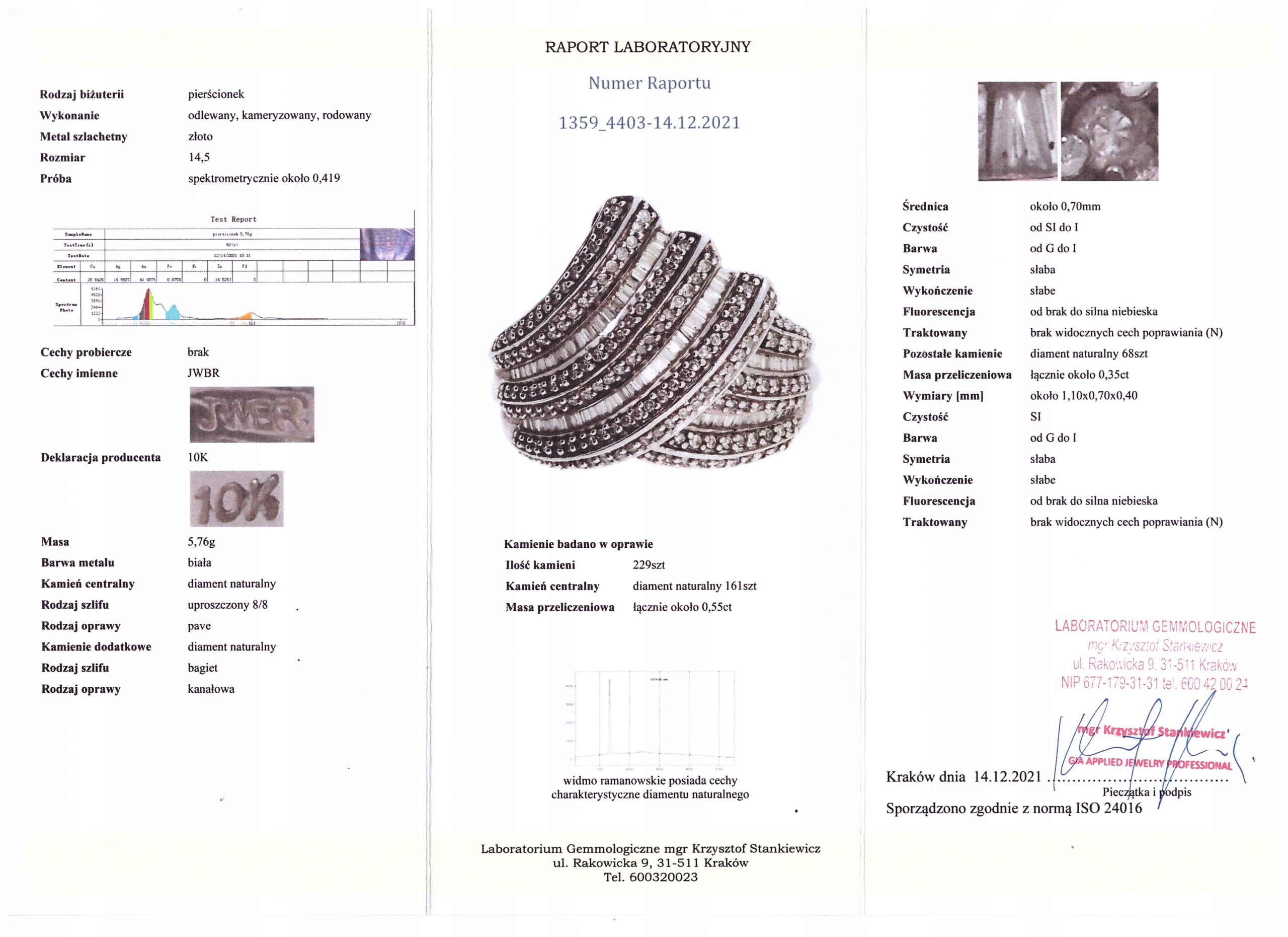 Der Ring hat ein Zertifikat und einen Wert von 4900 PLN