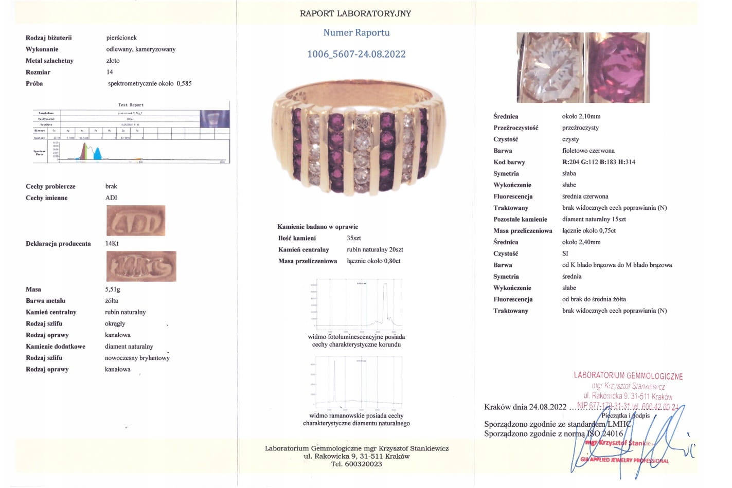 Der Ring hat ein Zertifikat und einen Wert von 13.000 PLN