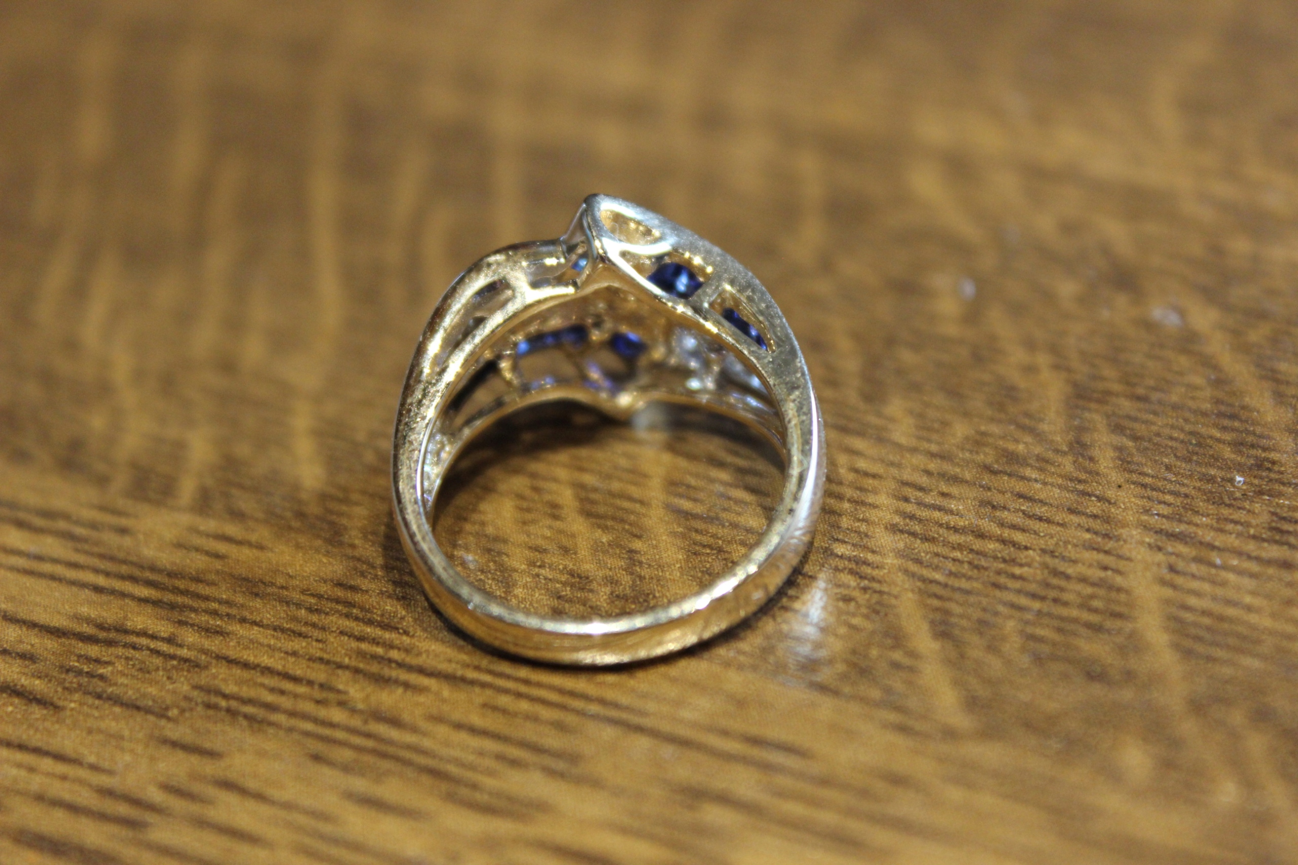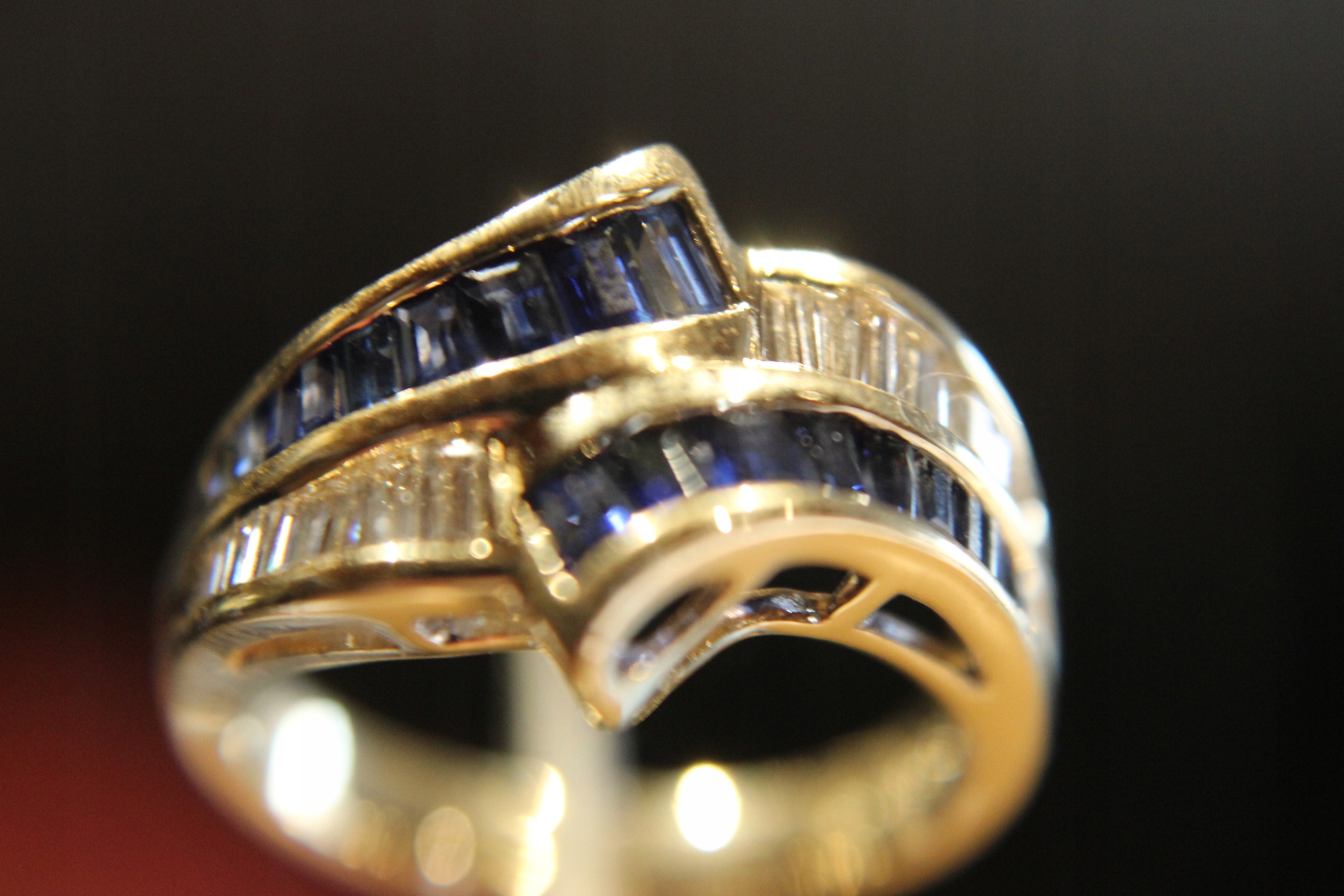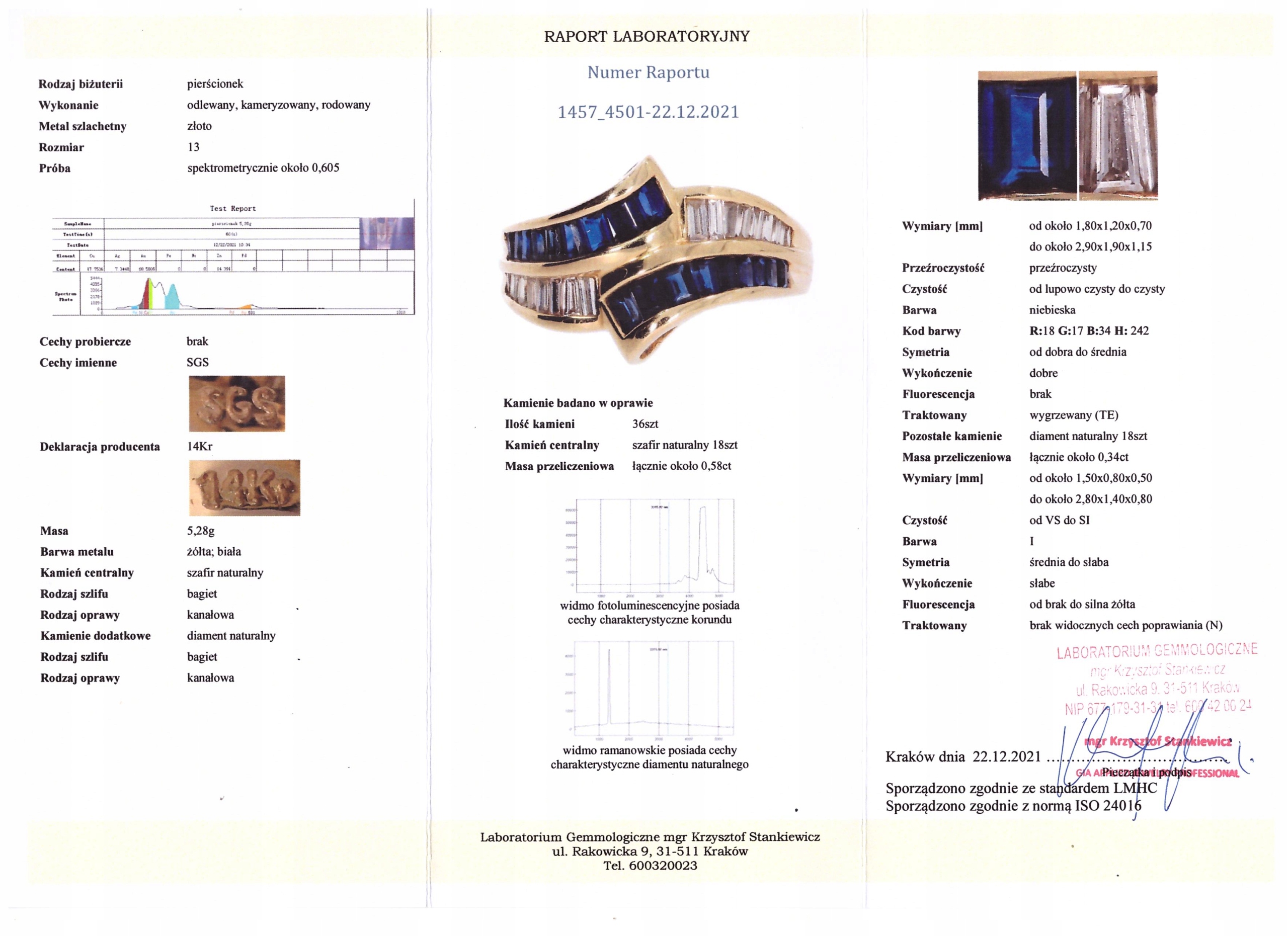 Spektrometrisch vergoldeten, ca. 0,605 (Herstellerangabe 14k) Ring mit natürlichen Diamanten und natürlichen Saphiren an.