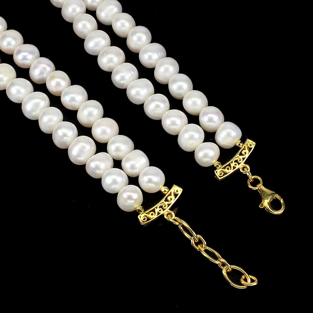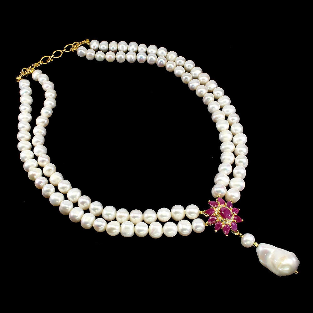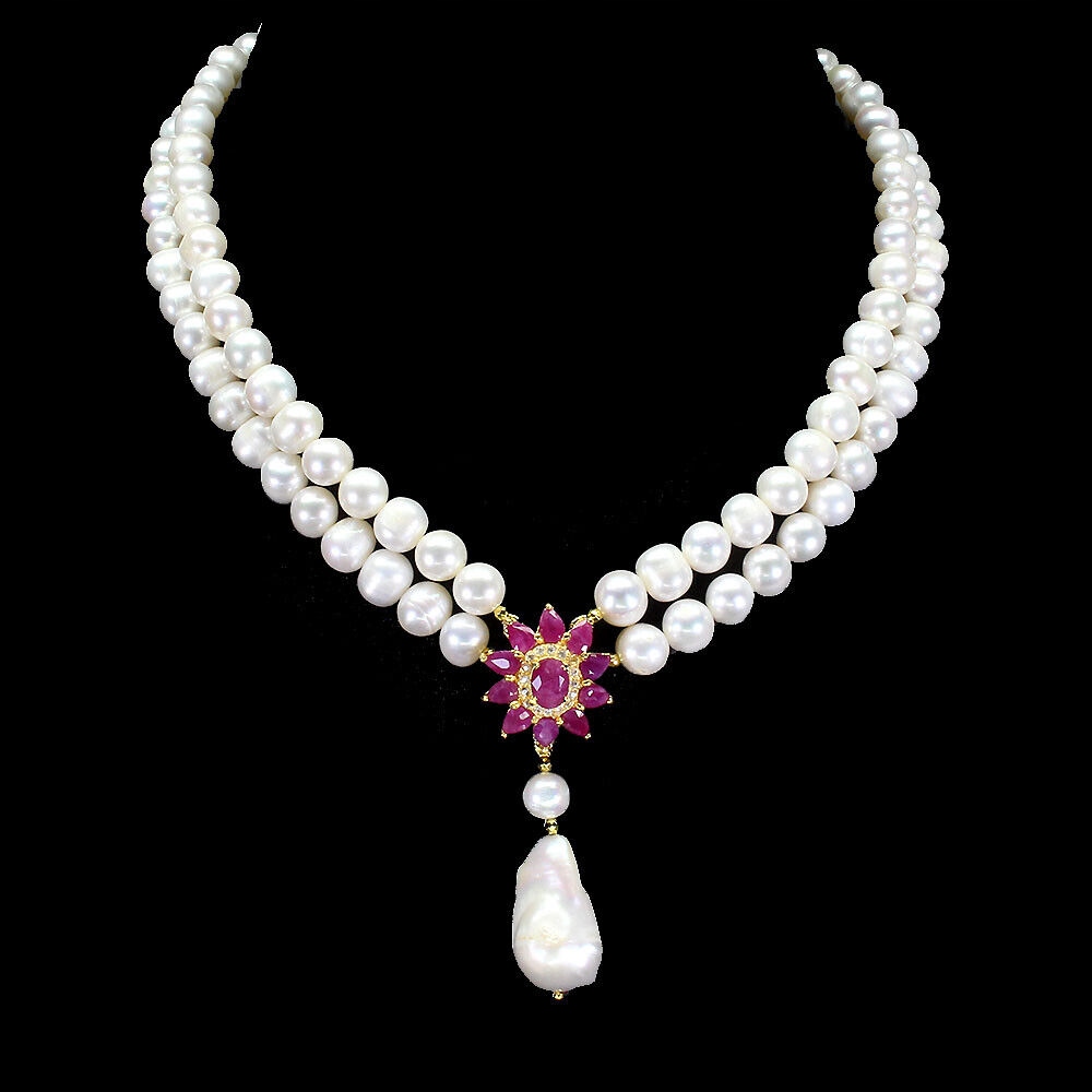 Wir bieten Ihnen eine neue, vergoldete 14 Karat Gelbgold, Silber - 925 Feinheit Halskette mit Naturperlen, weißem Topas und Rubinen.