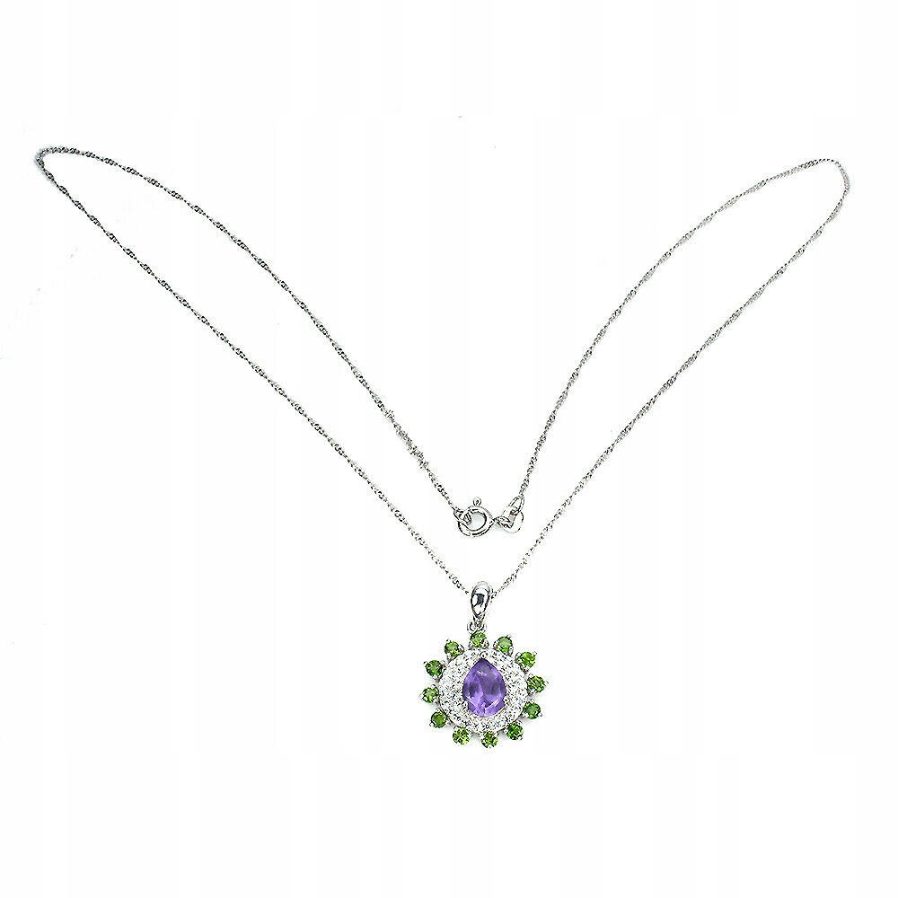 Wir bieten Ihnen eine neue Halskette aus 14 Karat Weißgold, Silber - 925er Feinheit - mit natürlichen Diopsiden, Amethysten und Zirkonia.