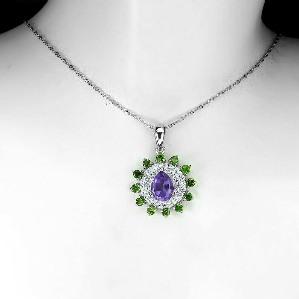 Halskette aus 925er Silber mit natürlichem Diopsid Amethyst