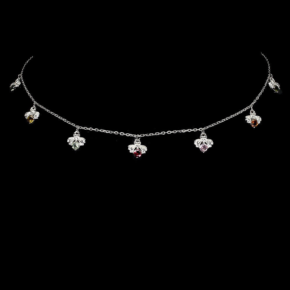 Wir bieten Ihnen eine neue, weiß 14K vergoldete Silber-925-Halskette mit natürlichen Turmalinen und Zirkonias an.