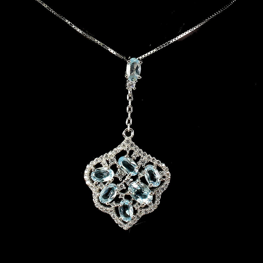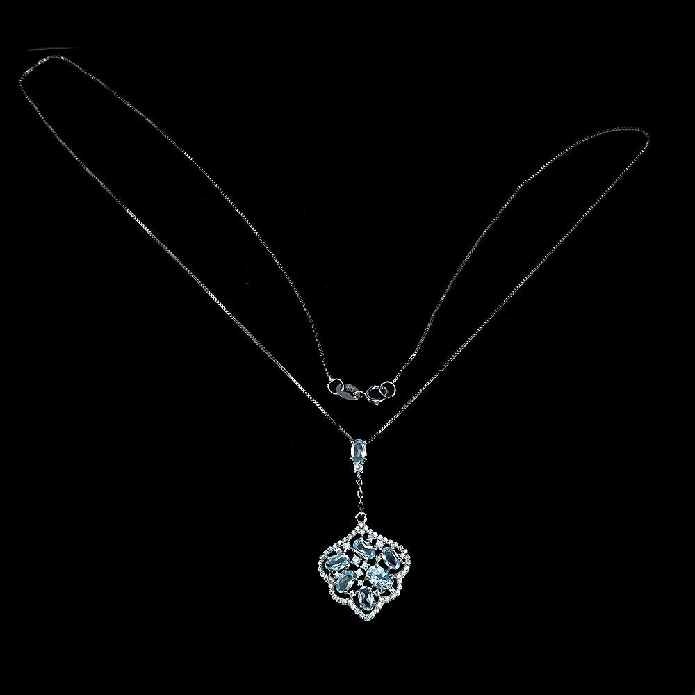 Halskette aus Sterlingsilber 925 Natur Sky Blue Topas Zirkonia