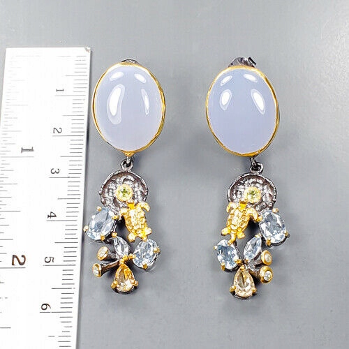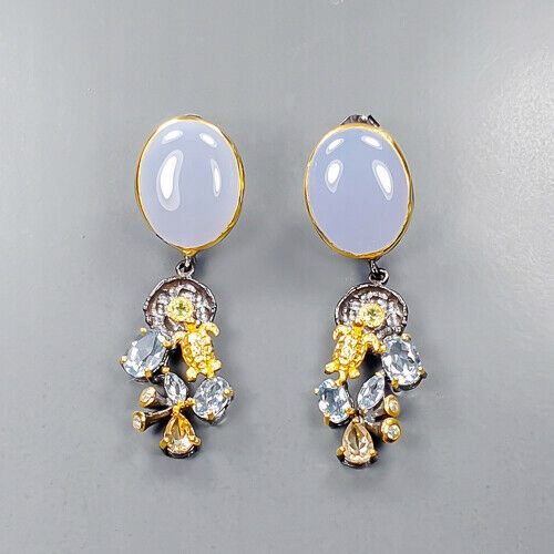 Wir bieten Ihnen neue, vergoldete Gelbgold und schwarz rhodinierte Silber - 925 Ohrringe mit natürlichem Chalcedon, Citrin, Blautopas und Peridot.