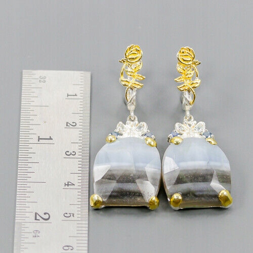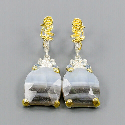 Wir bieten Ihnen neue, vergoldete Gelb- und Weißgold-Ohrringe aus 925er Silber mit natürlichen blauen Opalen, Saphiren und Topasen.