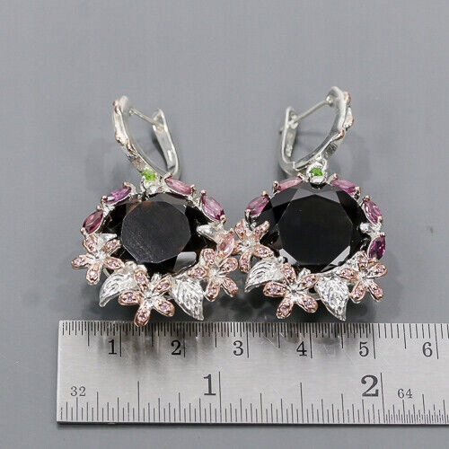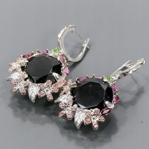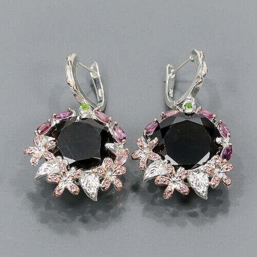 Wir bieten Ihnen neue, weiß- und rosévergoldete Ohrringe aus Silber - 925 mit natürlichem Rauchquarz, Diopsiden, Granaten (Rhodoliten) und Zirkonia.