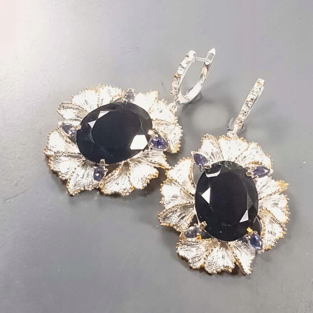 Künstlerische natürliche Rauchquarz-Iolithen -Ohrringe 2