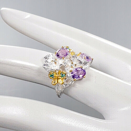 Künstlerischer Ring 925 Amethysten Blumen Größe 14