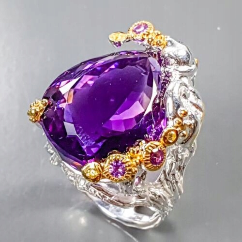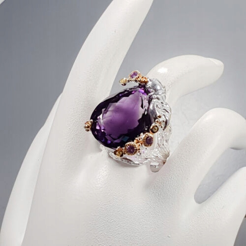 Künstlerischer Ring Amethyst Granat Topas Größe 18