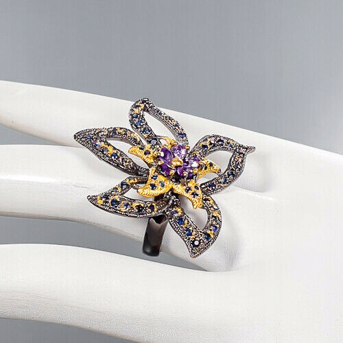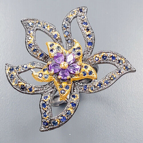 Künstlerischer Ring Amethyst Größe 16 Saphir Blume