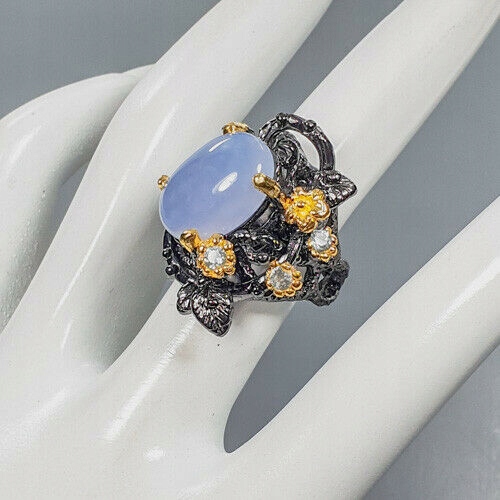 Künstlerischer Ring mit Chalcedon Topas 925 Größe 12,5