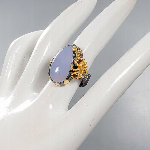 Künstlerischer Ring mit Chalcedon Topas 925 Größe 17,5
