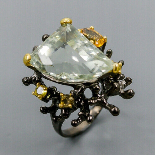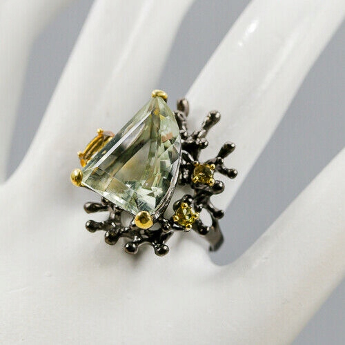 Künstlerischer grüner Amethyst Ring Größe 17 Citrin