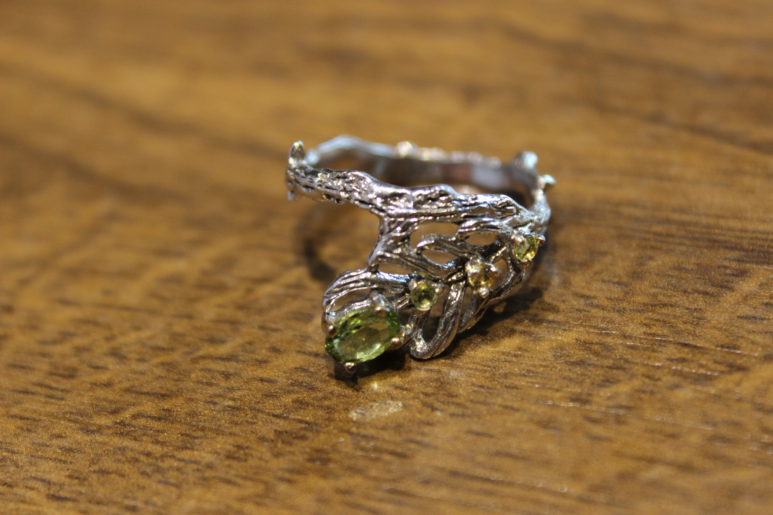 Kunstvoller zarter Olivin Ring Gr. 18 925