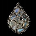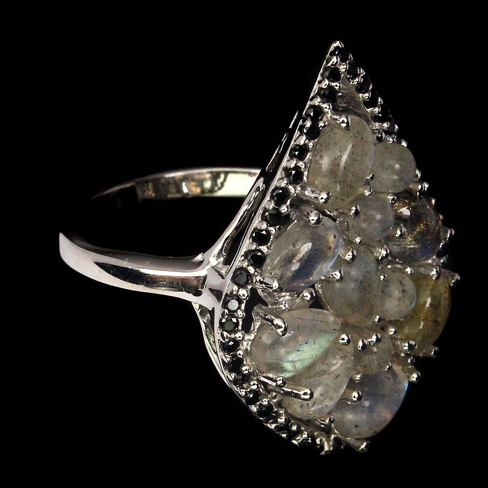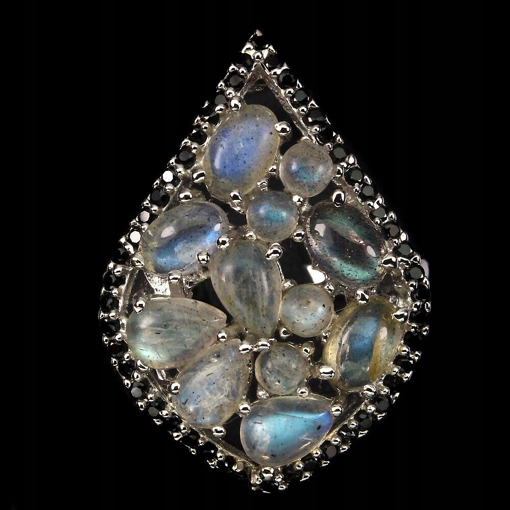 Ich verkaufe einen neuen (ohne Etikett), 14 Karat vergoldeter Silber-925-Ring mit natürlichen Labradoriten und schwarzen Spinellen.